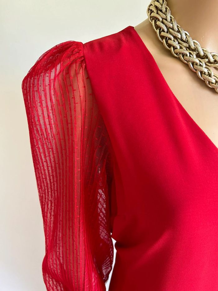Magnifique robe rouge avec manches longues transparentes, de marque Naf Naf. Taille 36. Elle est neuve avec étiquette (valeur 60€). aisselle à aisselle 49 cms épaule à épaule 37 cms longueur manches 60 cms taille 52 cms longueur depuis épaule 94 cms 100% polyester Le prix reste négociable dans la limite du raisonnable. Un petit cadeau dans le colis 🌸 (Boîte 40)