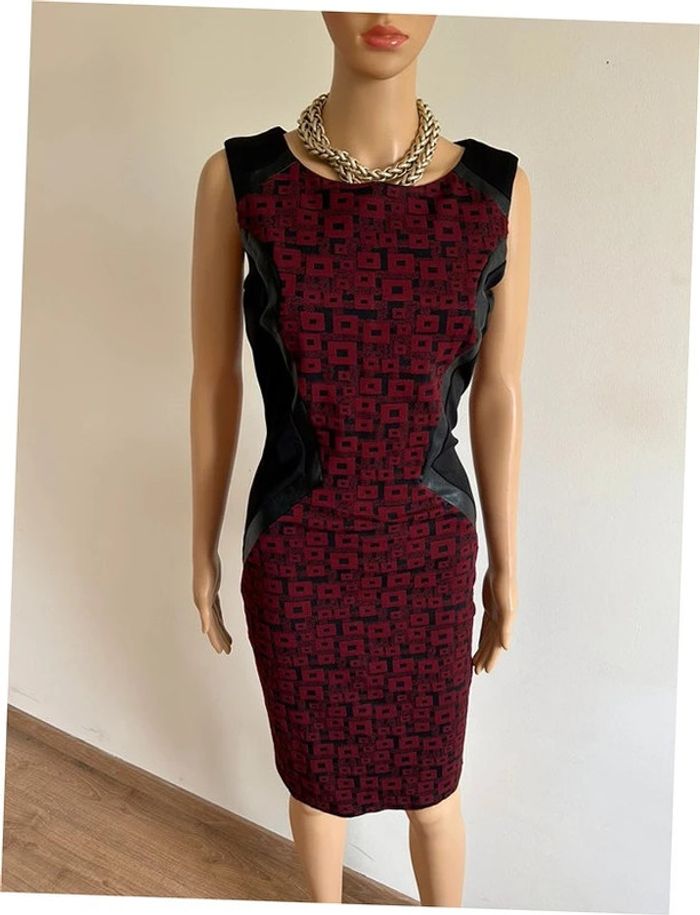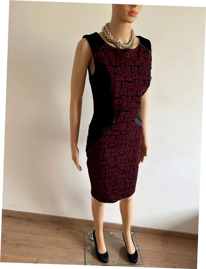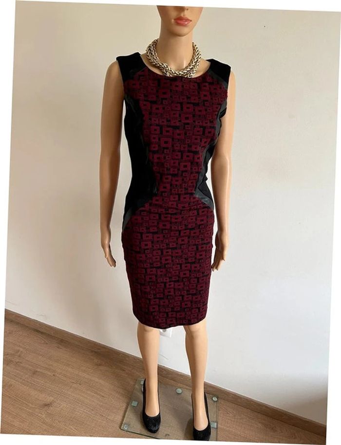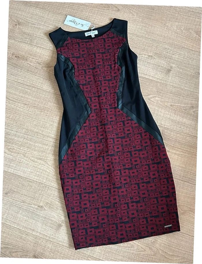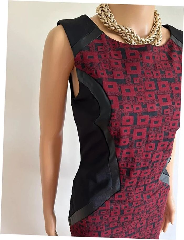 Magnifique robe noire et bordeaux sans manches, avec empiècements en simili cuir, de marque Jus d’Orange. Fermeture sur le côté. Taille 1 qui correspond à du 36. Elle est neuve avec étiquette. aisselle à aisselle 42 cms taille 36 cms longueur depuis épaule 98 cms Le tissu est extensible 95% polyester et 5% elasthanne Le prix reste négociable dans la limite du raisonnable. Un petit cadeau dans le colis 🌸