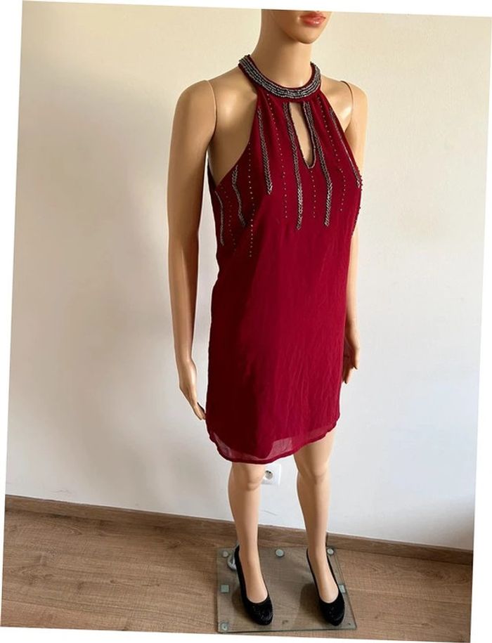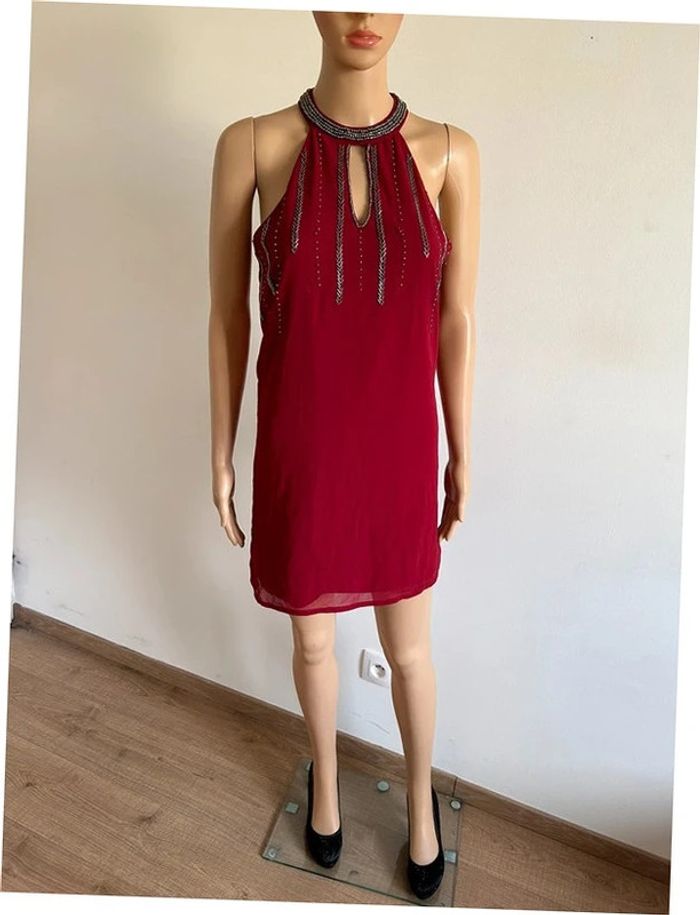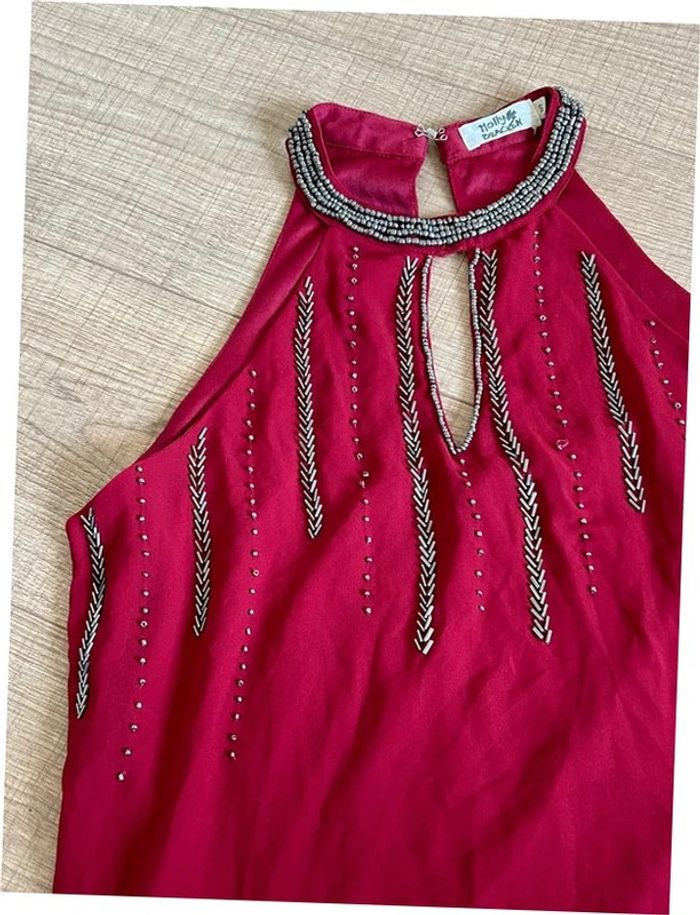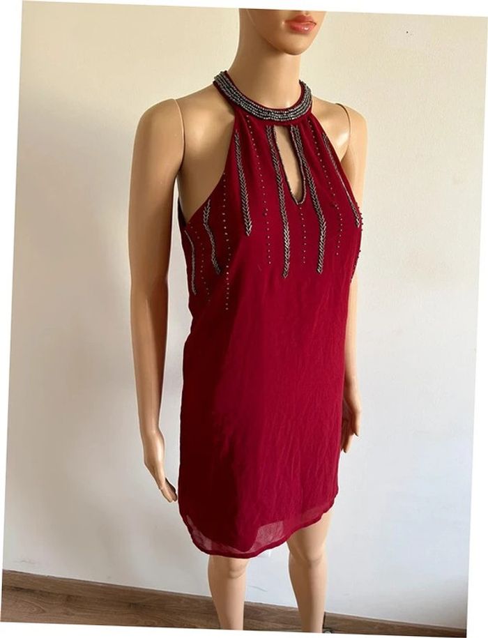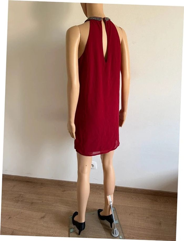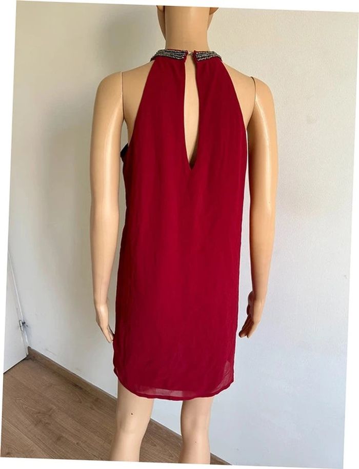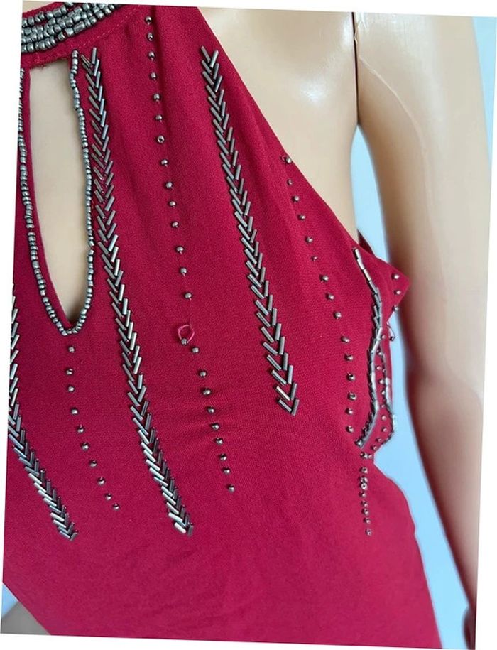 Robe courte rouge sans manches avec perles Molly Bracken taille S état satisfaisant - photo numéro 10