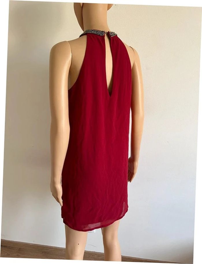 Robe courte rouge sans manches avec perles Molly Bracken taille S état satisfaisant - photo numéro 3