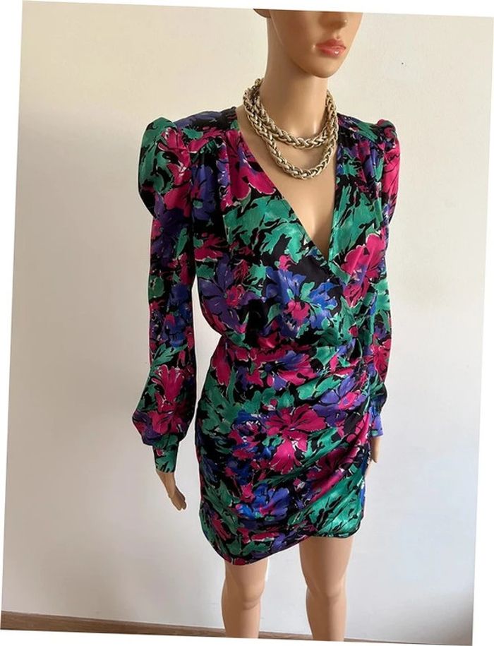Magnifique robe satinée imprimée à manches longues, de marque Morgan. Collection Iris Mittenaere. Taille 38. Elle est neuve avec étiquette (valeur 80€). aisselle à aisselle 50 cms epaule à épaule 42 cms longueur manches 62 cms taille 36 cms à 44 cms longueur depuis épaule 87 cms La taille est extensible 100% polyester Le prix reste négociable dans la limite du raisonnable. Un petit cadeau dans le colis 🌸 (Boîte 44)