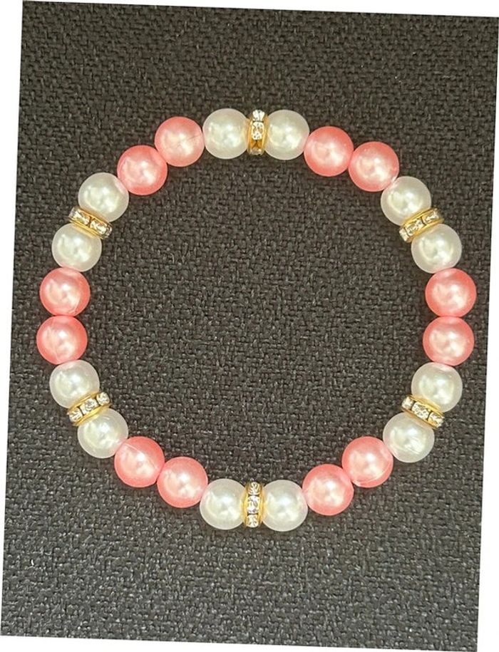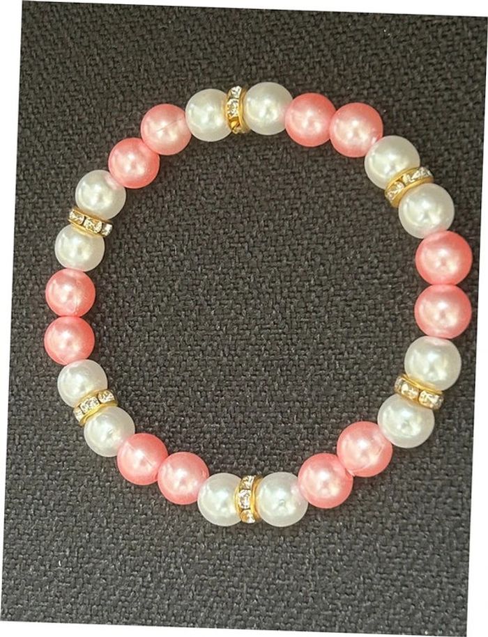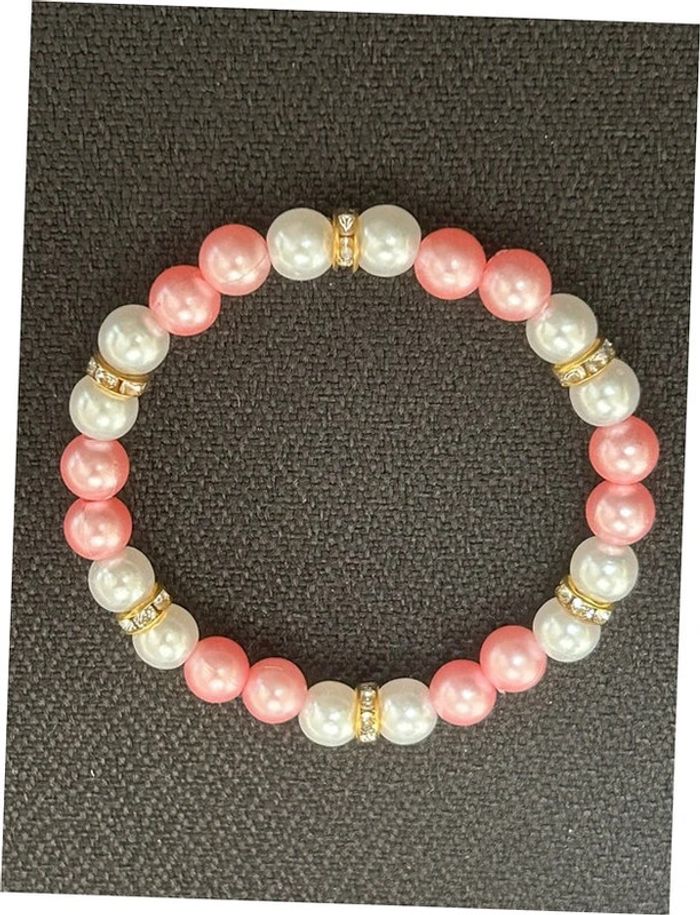 Bracelet nacré rose et doré en perles taille unique jamais porté - photo numéro 2