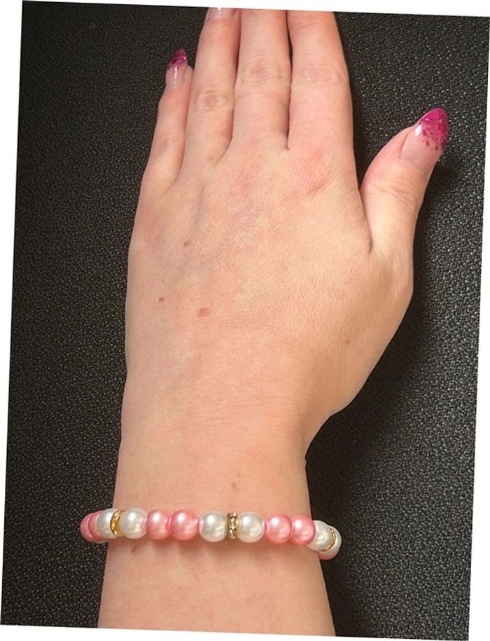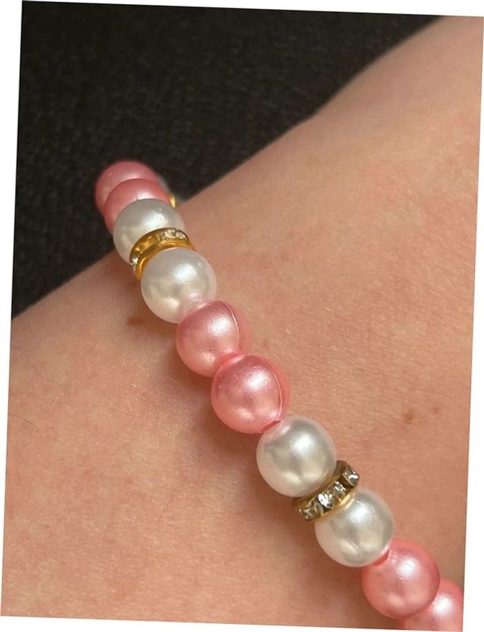 Bracelet nacré rose et doré en perles taille unique jamais porté - photo numéro 7