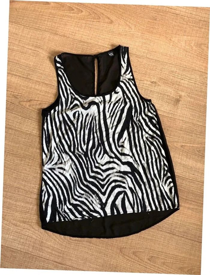 Débardeur imprimé noir et blanc sans manches Pimkie taille S TBE - photo numéro 2