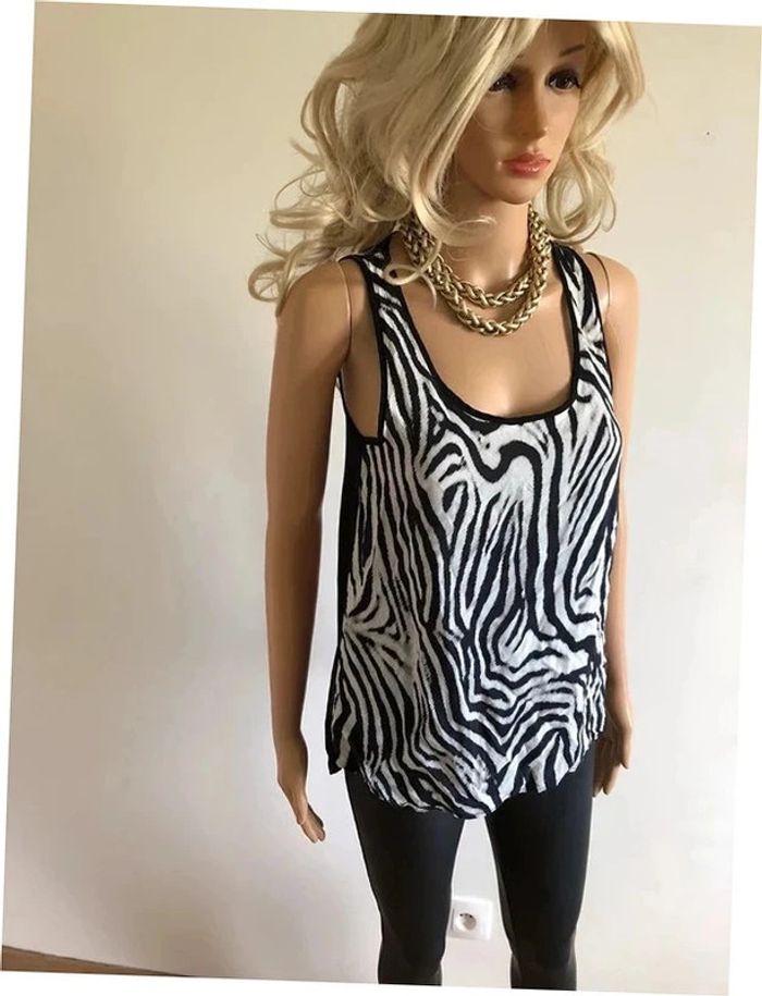 Débardeur imprimé noir et blanc sans manches Pimkie taille S TBE - photo numéro 11