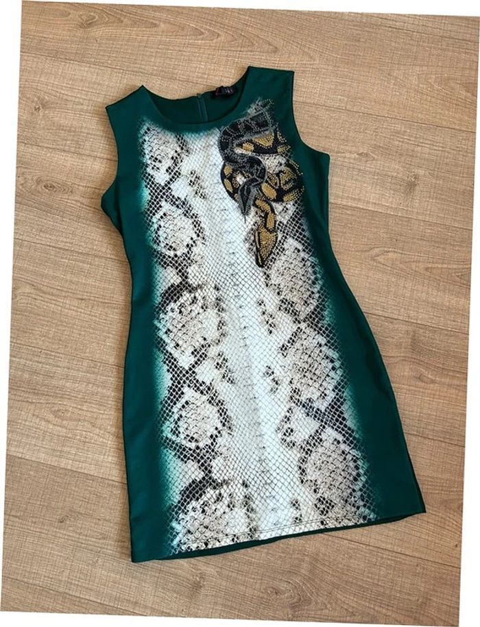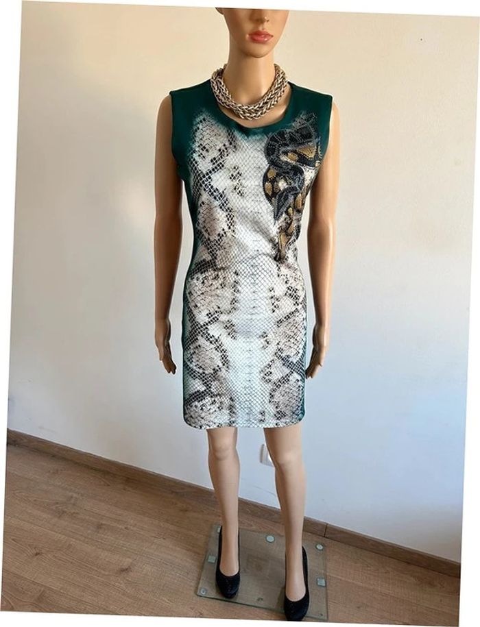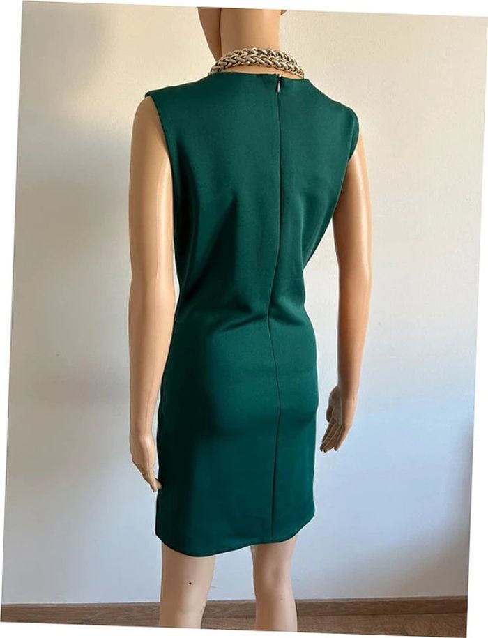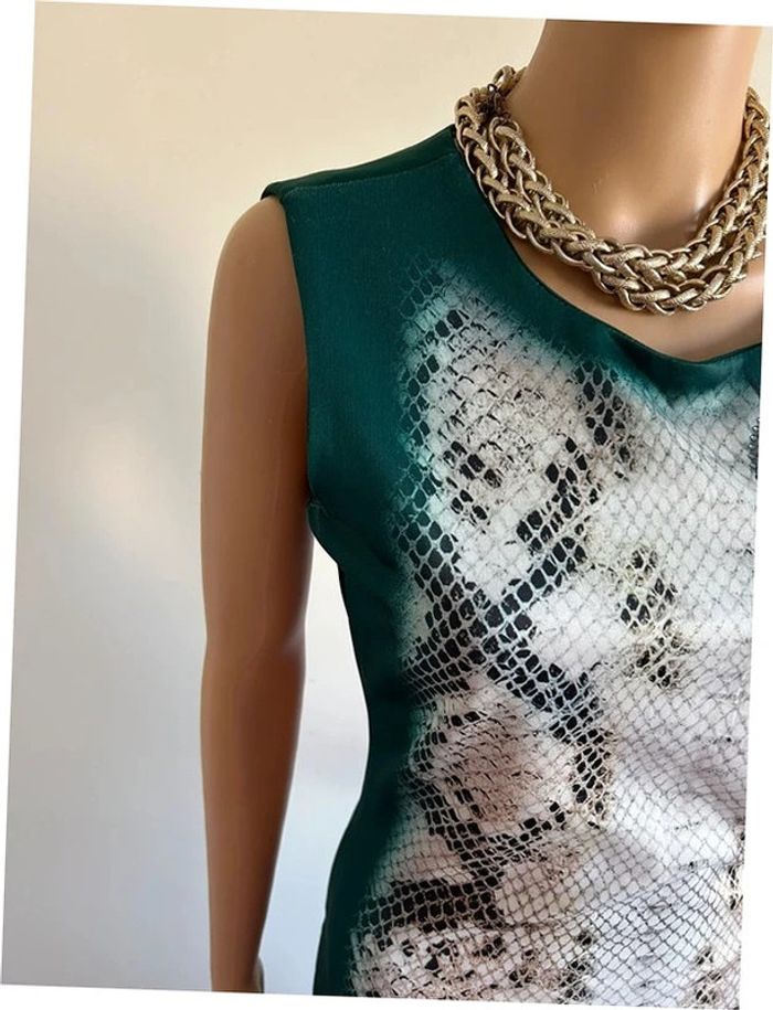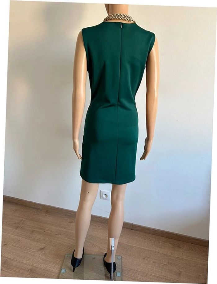 Jolie robe verte foncée et imprimée sans manches Fermeture dans le dos. Taille 3 qui correspond à une taille 40. Peu portée, en très bon état. aisselle à aisselle 44 cms à 50 cms taille 38 cms à 42 cms longueur depuis épaule 87 cms Le tissu est extensible 70% polyester et 30% fil métallisé Le prix reste négociable dans la limite du raisonnable. Un petit cadeau dans le colis 🌸 (Boîte 21)