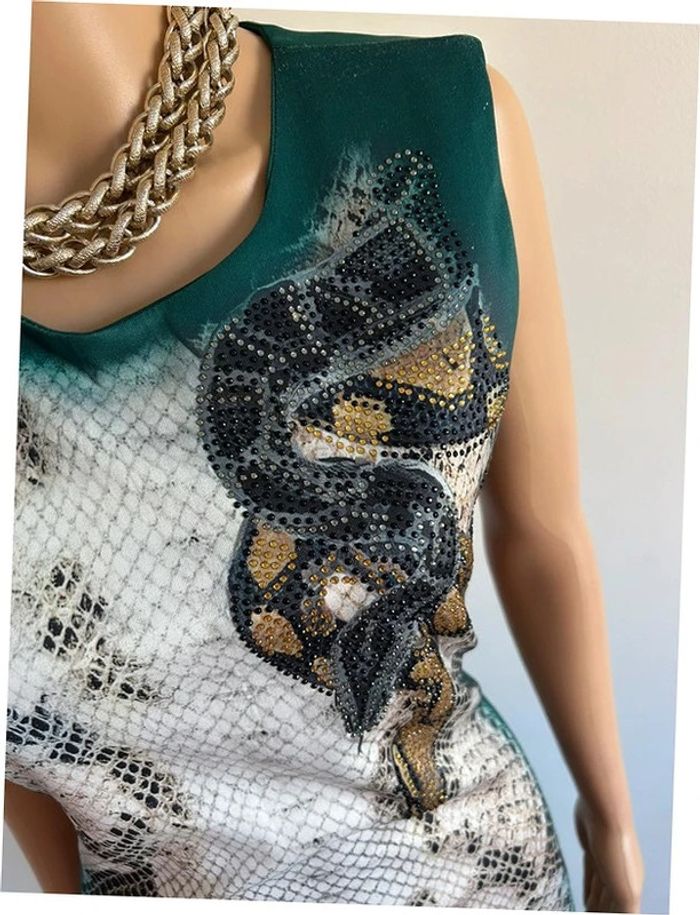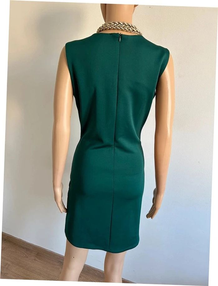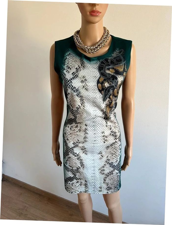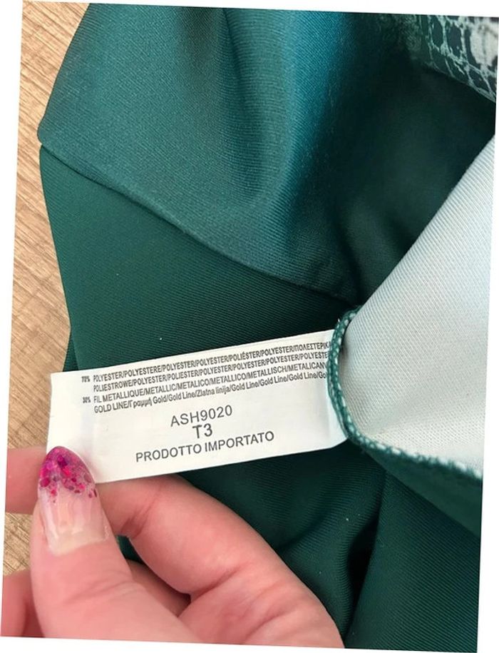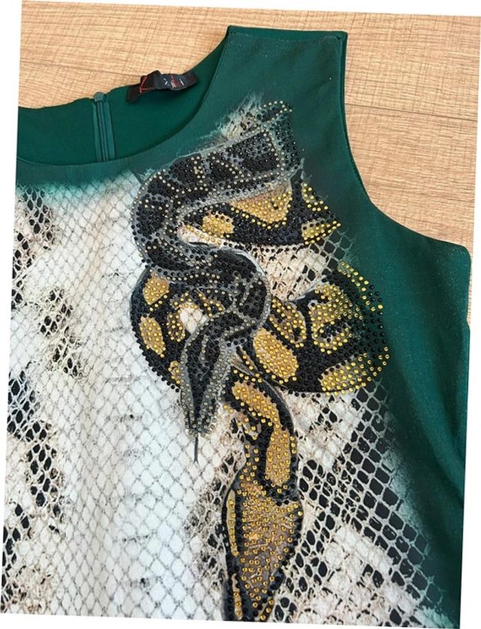 Jolie robe verte foncée et imprimée sans manches Fermeture dans le dos. Taille 3 qui correspond à une taille 40. Peu portée, en très bon état. aisselle à aisselle 44 cms à 50 cms taille 38 cms à 42 cms longueur depuis épaule 87 cms Le tissu est extensible 70% polyester et 30% fil métallisé Le prix reste négociable dans la limite du raisonnable. Un petit cadeau dans le colis 🌸 (Boîte 21)