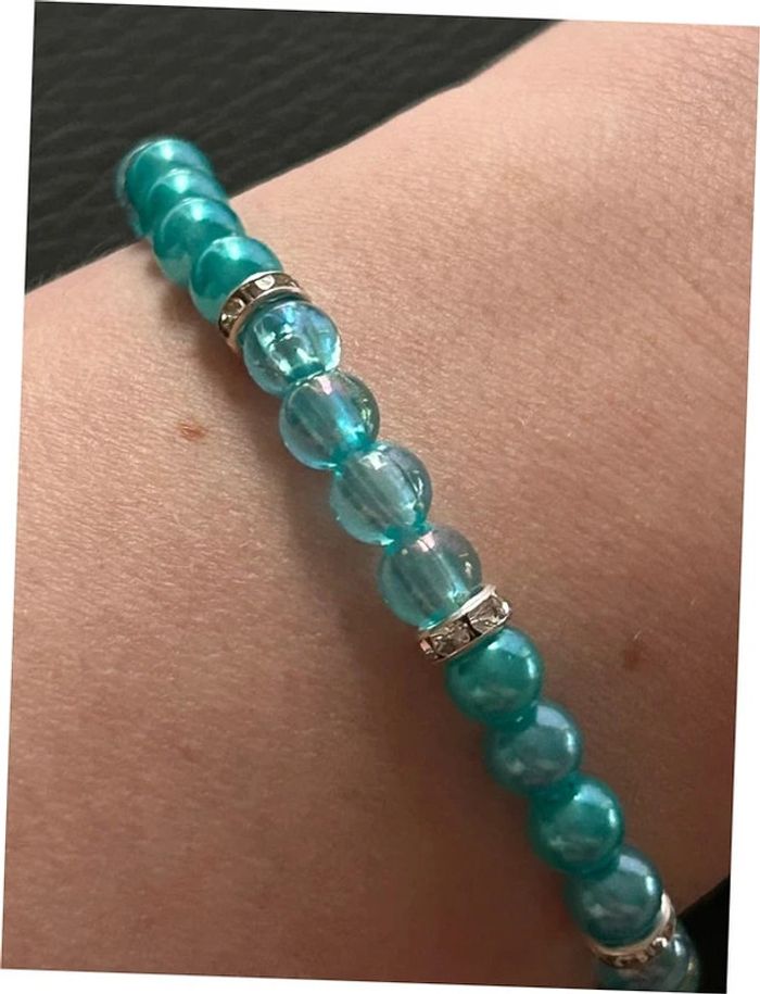 Bracelet turquoise et argenté en perles taille unique jamais porté - photo numéro 7