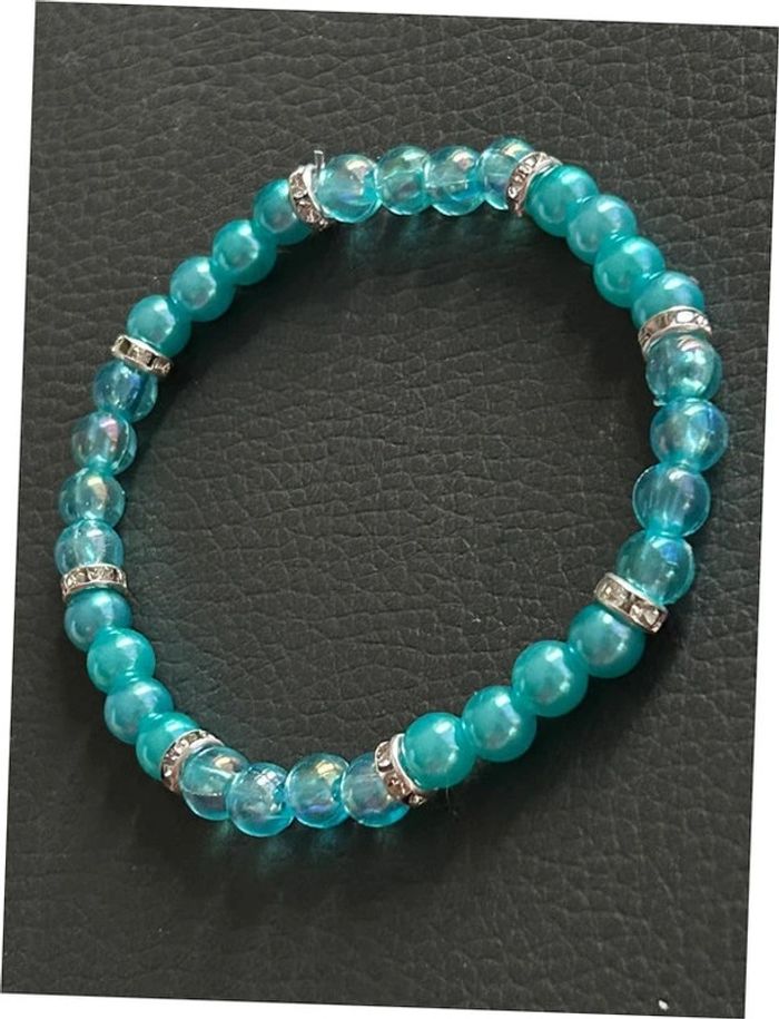 Bracelet turquoise et argenté en perles taille unique jamais porté - photo numéro 1