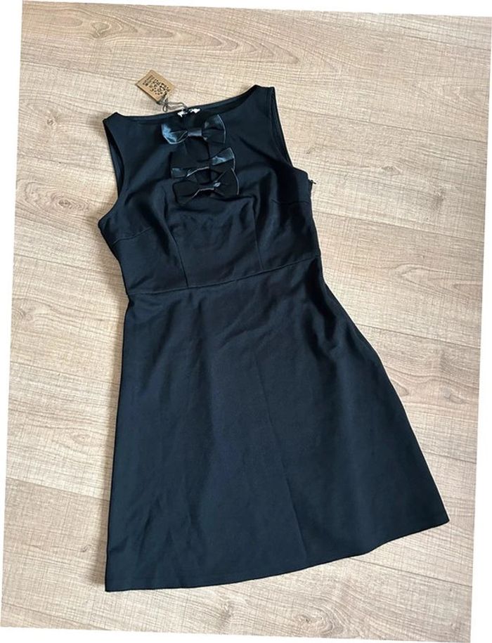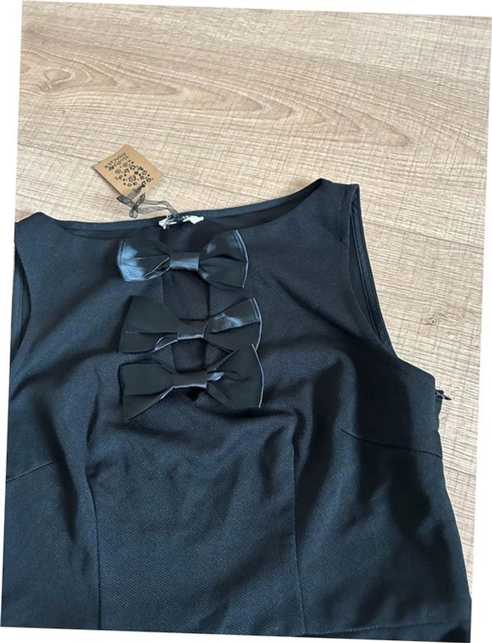 Jolie robe noire sans manches, avec noeuds sur le devant, de marque Molly Bracken. Fermeture sur le côté. Taille unique qui convient pour du 36/38. Elle est neuve avec étiquette. aisselle à aisselle 42 cms à 47 cms taille 36 cms à 39 cms longueur depuis épaule 87 cms Le tissu est extensible Le prix reste négociable dans la limite du raisonnable. Un petit cadeau dans le colis 🌸