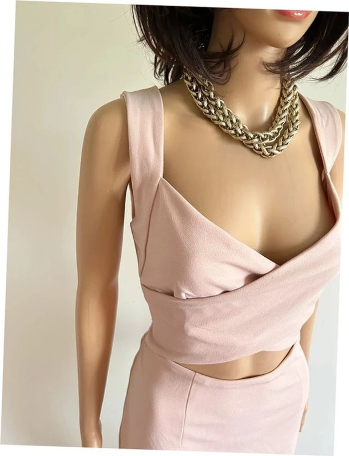 Magnifique robe rose claire sans manches, de marque Morgan. Ouverte au niveau du ventre. Fermeture dans le dos. Taille 38. Elle est neuve avec étiquette. aisselle à aisselle 45 cms à 50 cms taille 38 cms à 44 cms longueur depuis épaule 96 cms Le tissu est extensible 96% polyester et 4% elasthanne Le prix reste négociable dans la limite du raisonnable. Un petit cadeau dans le colis 🌸
