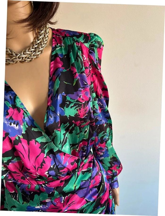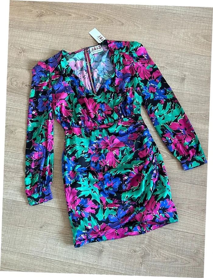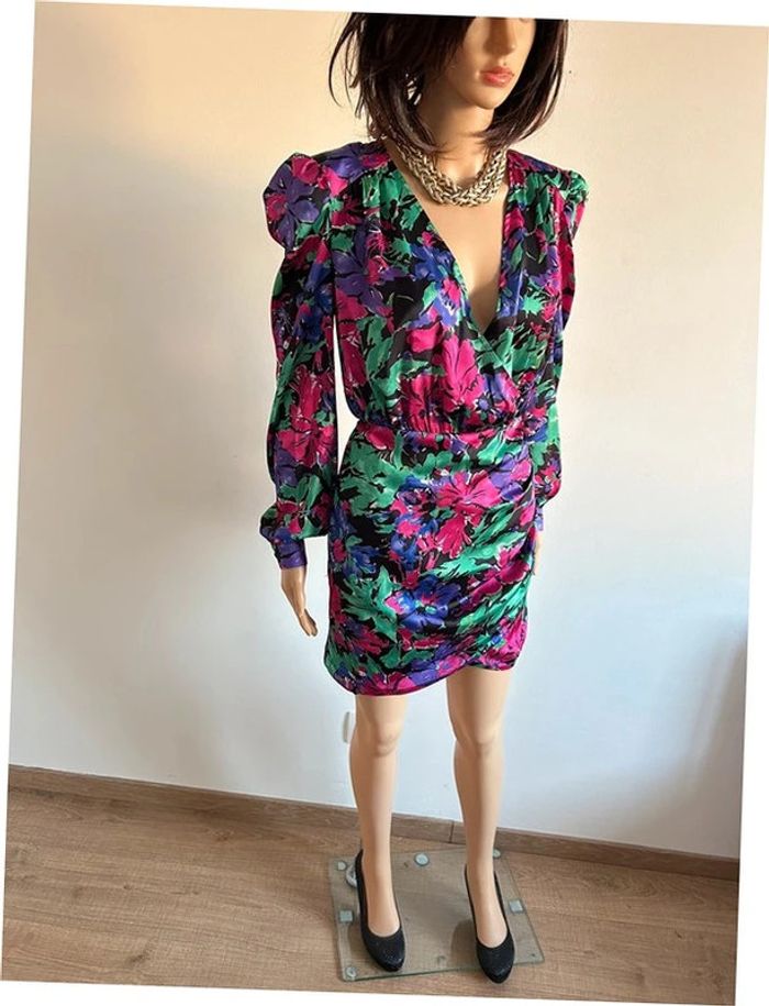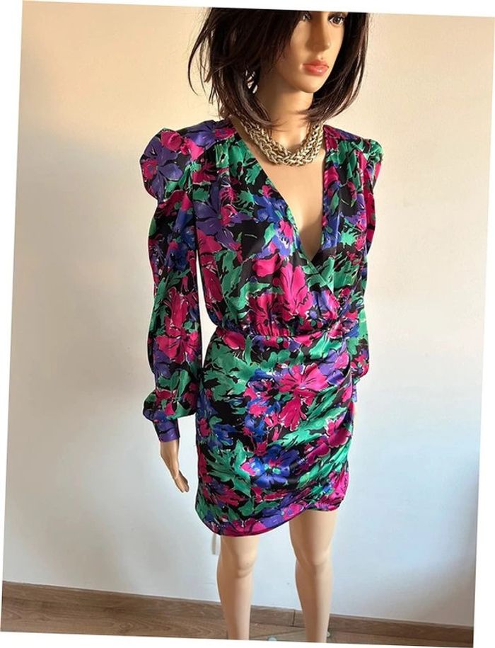 Magnifique robe satinée imprimée à manches longues, de marque Morgan. Collection Iris Mittenaere. Taille 38. Elle est neuve avec étiquette (valeur 80€). aisselle à aisselle 50 cms epaule à épaule 42 cms longueur manches 62 cms taille 36 cms à 44 cms longueur depuis épaule 87 cms La taille est extensible 100% polyester Le prix reste négociable dans la limite du raisonnable. Un petit cadeau dans le colis 🌸
