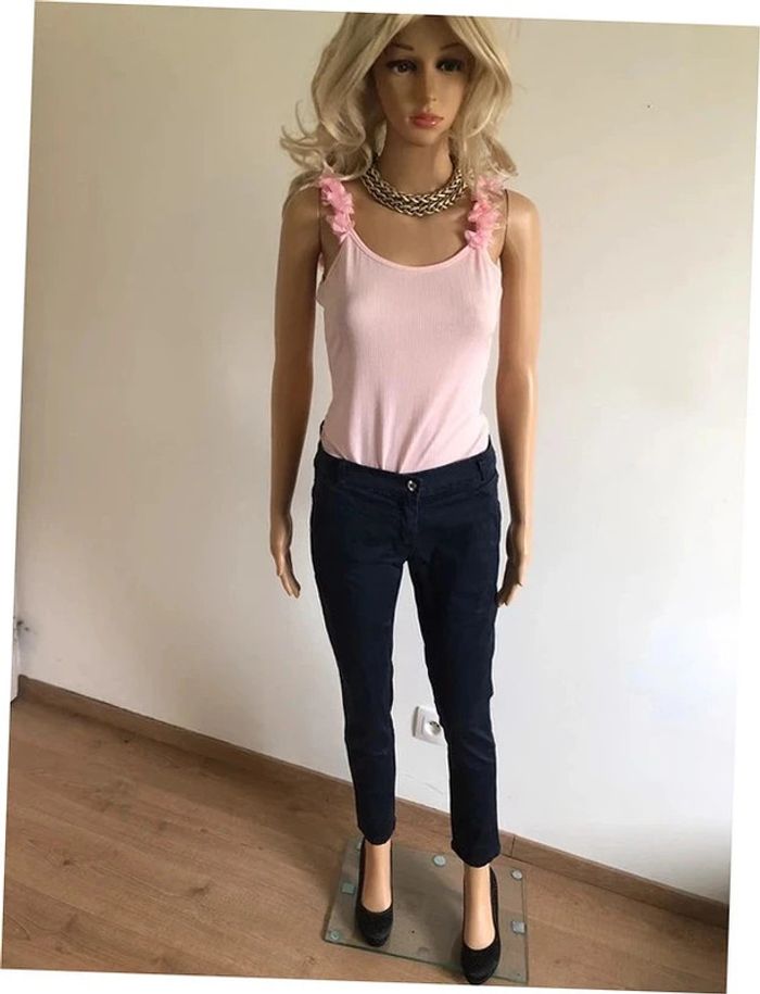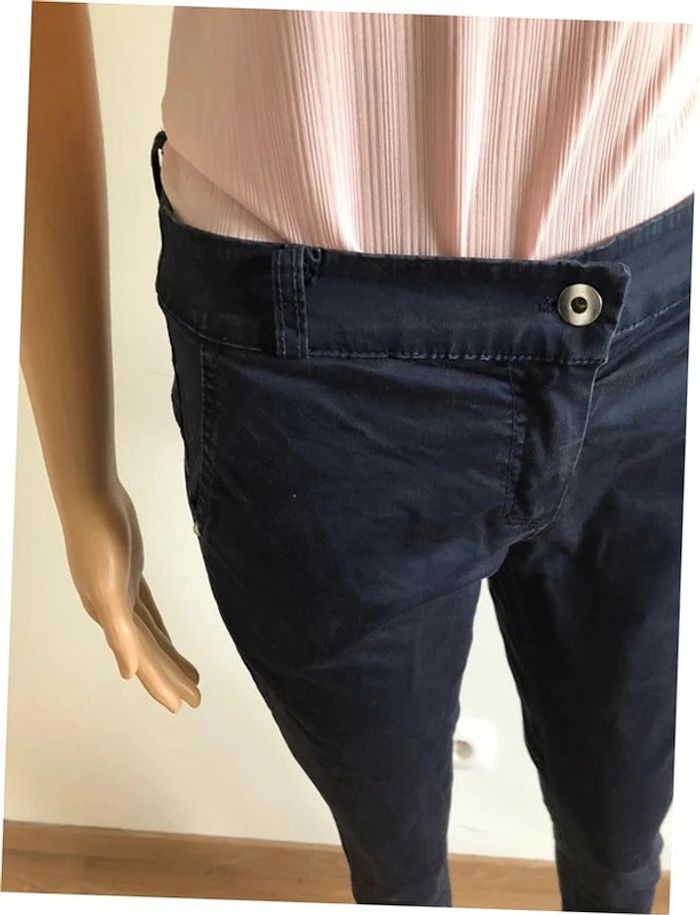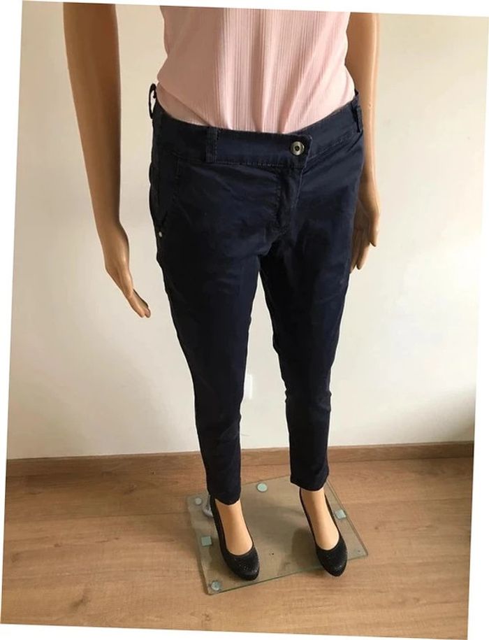 Joli pantalon bleu marine pour femme. Taille M. Porté plusieurs fois mais encore en très bon état. taille 36 cms à 40 cms longueur 96 cms longueur entrejambes 73 cms Le tissu est extensible 95% coton et 5% elasthanne Le prix reste négociable dans la limite du raisonnable. Un petit cadeau dans le colis.
