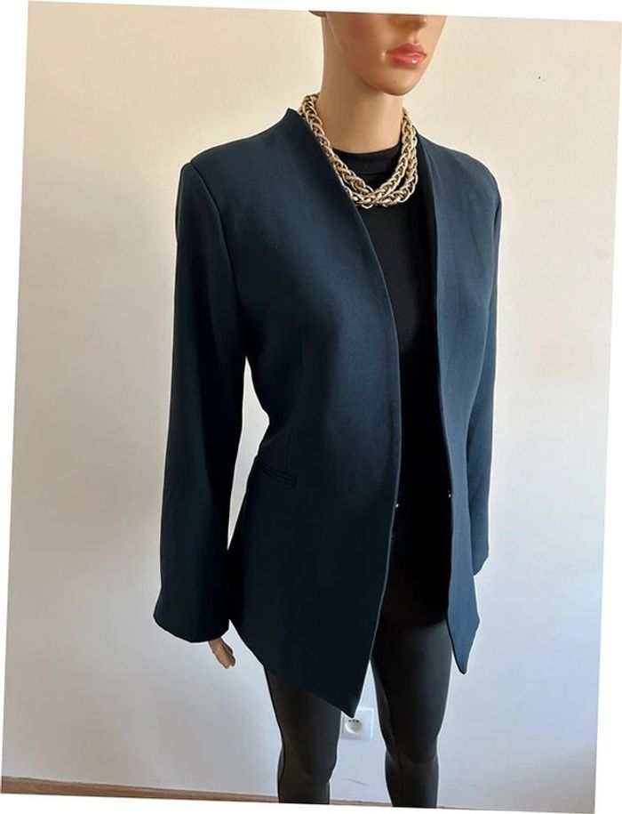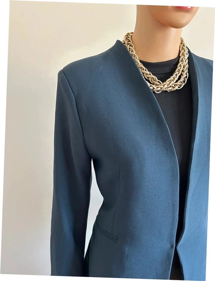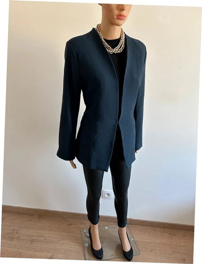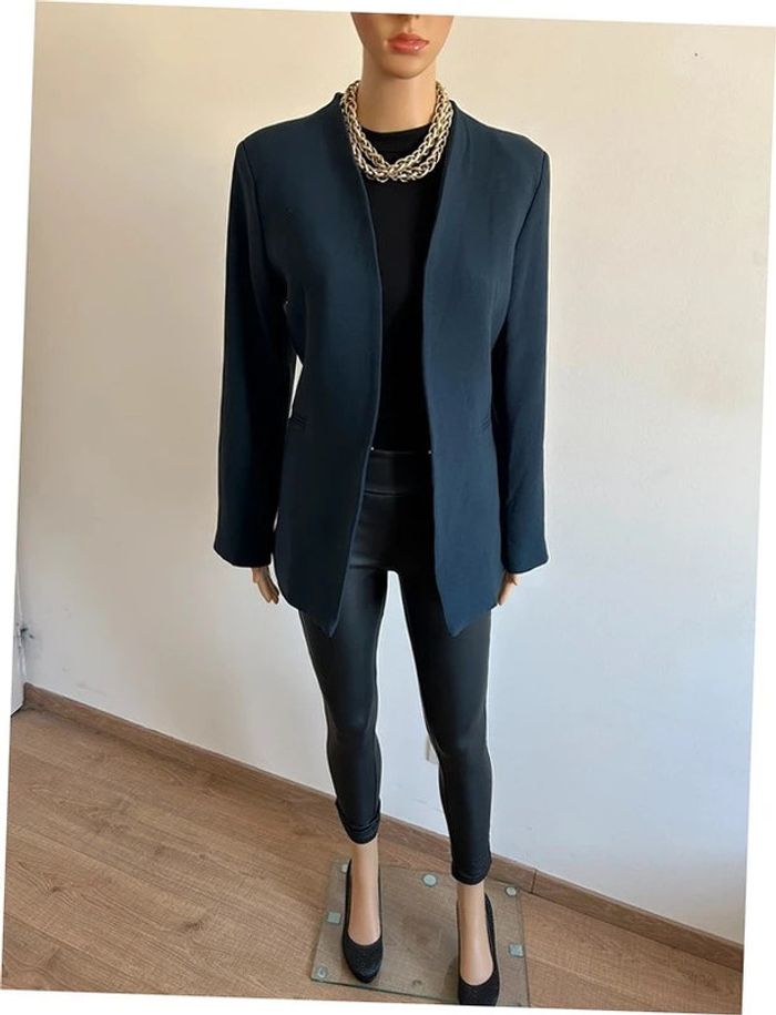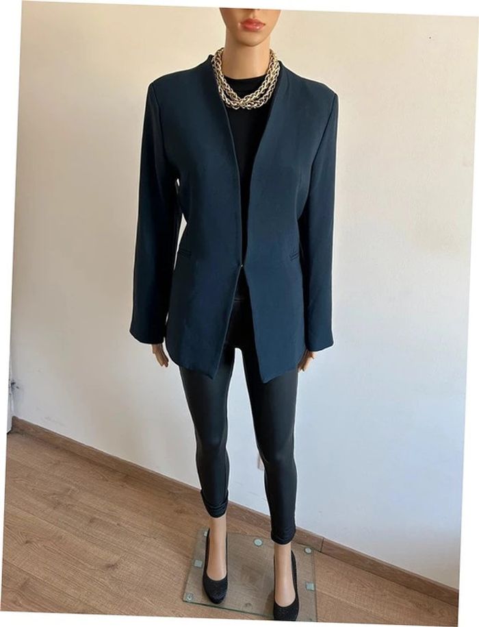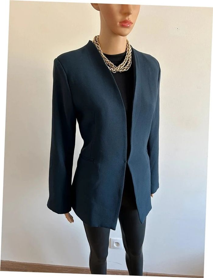 Magnifique blazer bleu marine de marque La City. Peut se porter ouvert ou fermé avec un crochet. Taille 40. Jamais porté, état neuf. aisselle à aisselle 47 cms epaule à épaule 41 cms longueur manches 60 cms taille 42 cms longueur depuis épaule 69 cms 94% polyester et 6% elasthanne Le prix reste négociable dans la limite du raisonnable. Un petit cadeau dans le colis 🌸