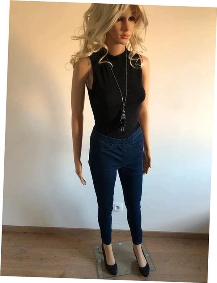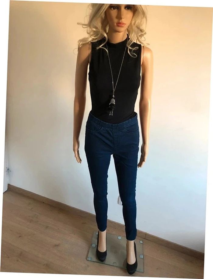 Jegging bleu marine pour femme, de marque Kiabi. Taille 36. Porté quelques fois mais encore en très bon état. taille 35 cms a 40 cms longueur 97 cms longueur entrejambes 72 cms Le tissu est extensible 73% coton, 25% polyester et 2% elasthanne