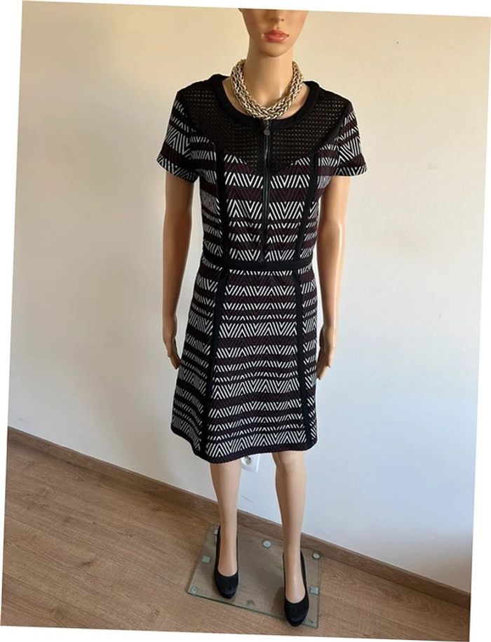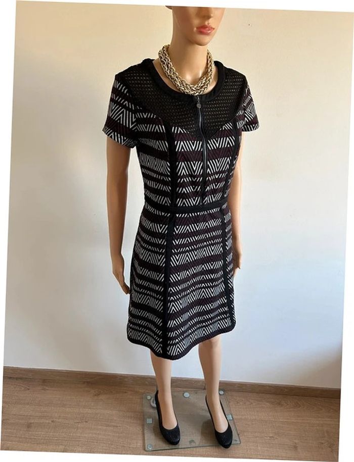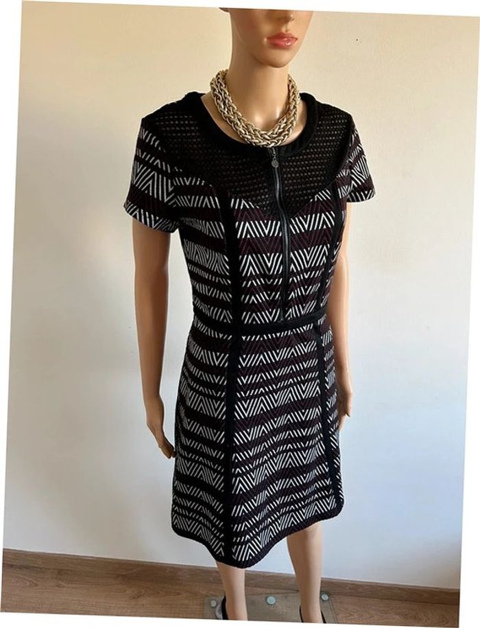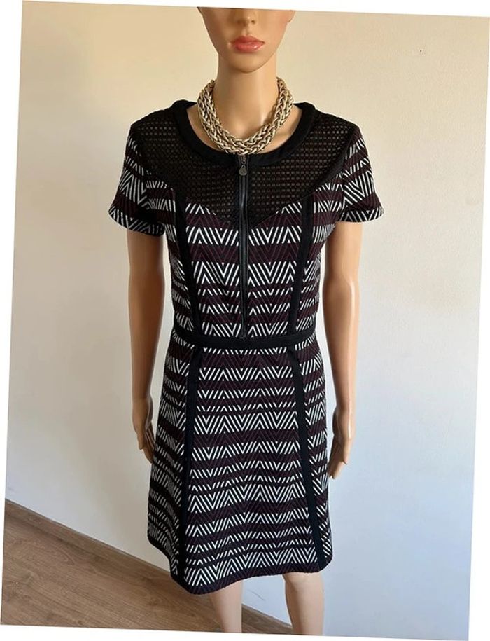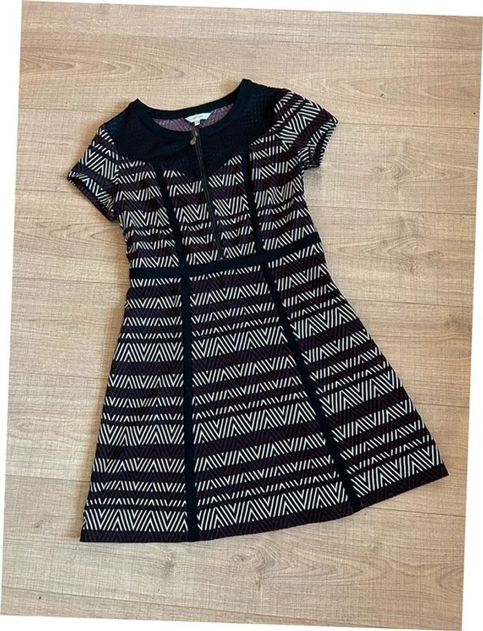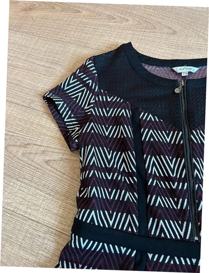 Jolie robe imprimée à manches courtes, de marque Jus d’Orange. Une fermeture sur le devant et une sur le côté. Taille 3 qui correspond à du 40. Portée quelques fois, en très bon état. aisselle à aisselle 45 cms à 52 cms épaule à épaule 40 cms à 44 cms taille 40 cms à 43 cms longueur depuis épaule 91 cms Le tissu est extensible Étiquette intérieure de composition coupée Le prix reste négociable dans la limite du raisonnable. Un petit cadeau dans le colis 🌸 (Bac 19)