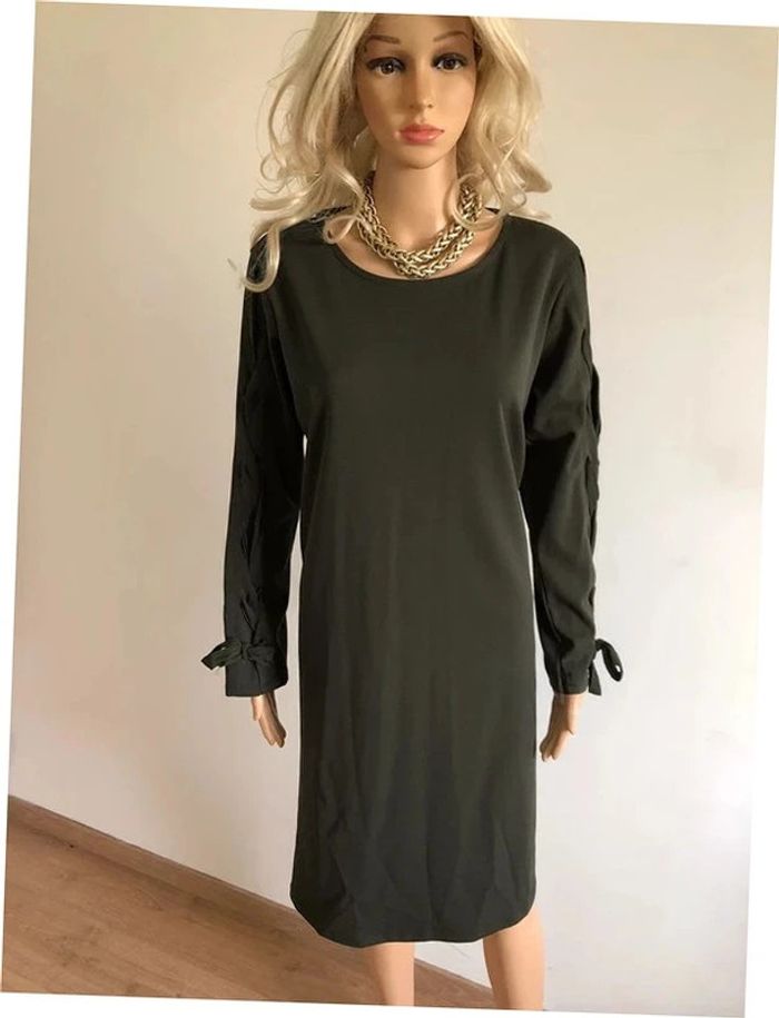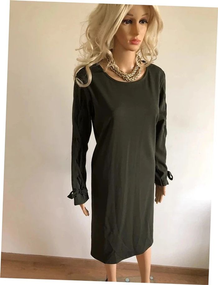 Robe kaki mi longue neuve à manches longues New Collection taille unique - photo numéro 2