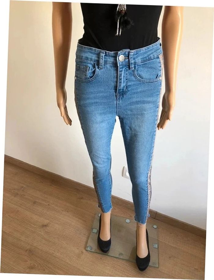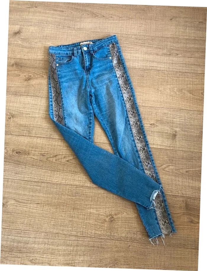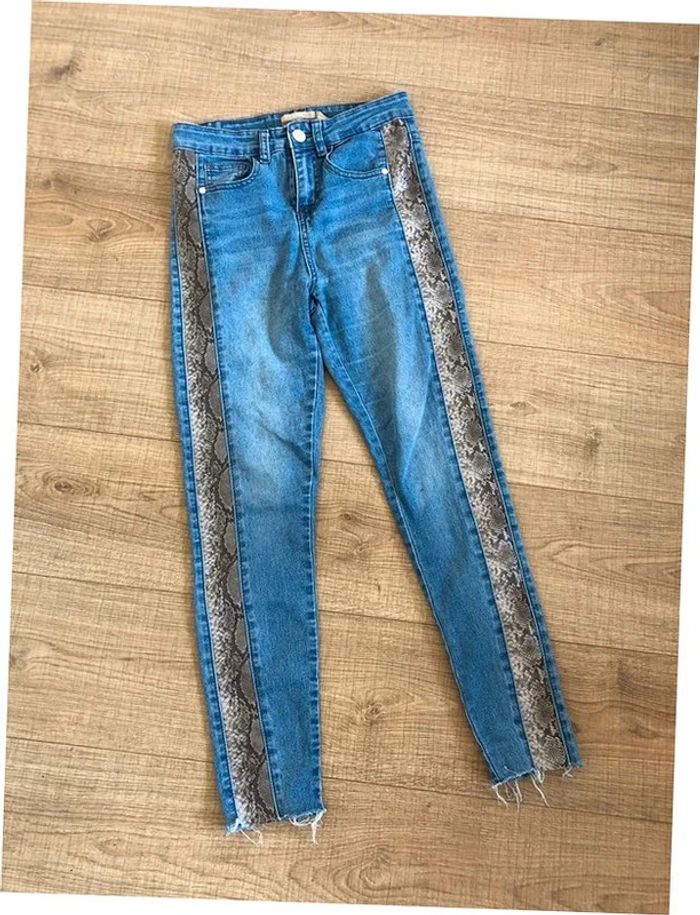 Jean skinny bleu avec imprimé python taille 36 TBE - photo numéro 1
