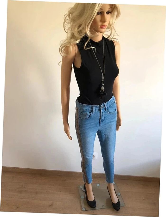 Jean skinny bleu avec imprimé python taille 36 TBE - photo numéro 17