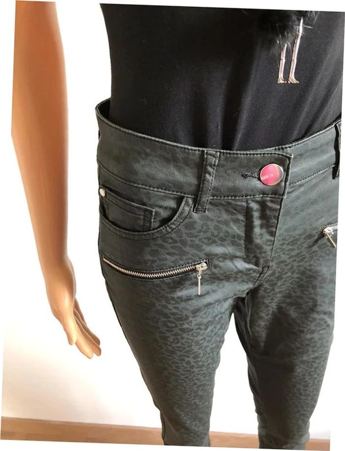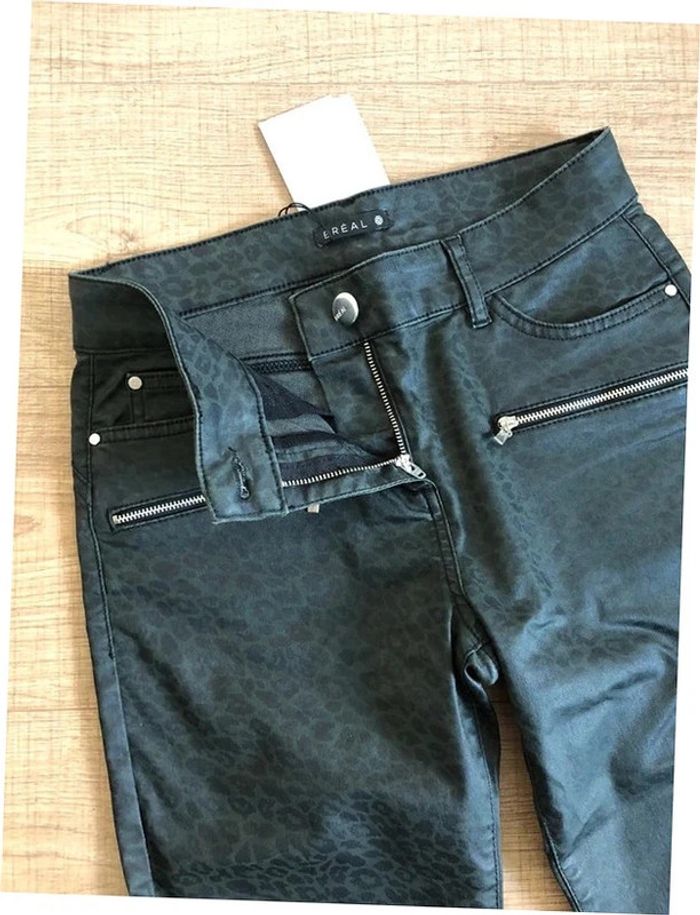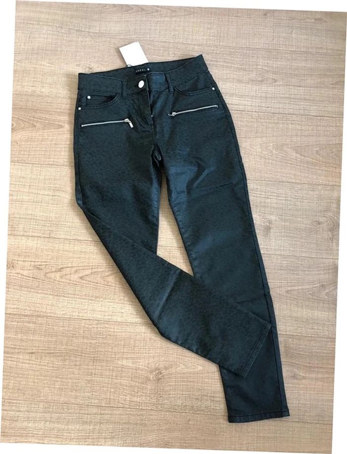 Magnifique pantalon enduit 7/8ème imprimé léopard kaki et noir, de marque Breal. Taille 36, coupe taille basculée. Il est neuf avec étiquette (valeur 60€). taille 36 cms longueur 93 cms longueur entrejambes 69 cms Le tissu est extensible 62% coton, 35% polyester et 3% elasthanne Le prix reste négociable dans la limite du raisonnable. Un petit cadeau dans le colis.