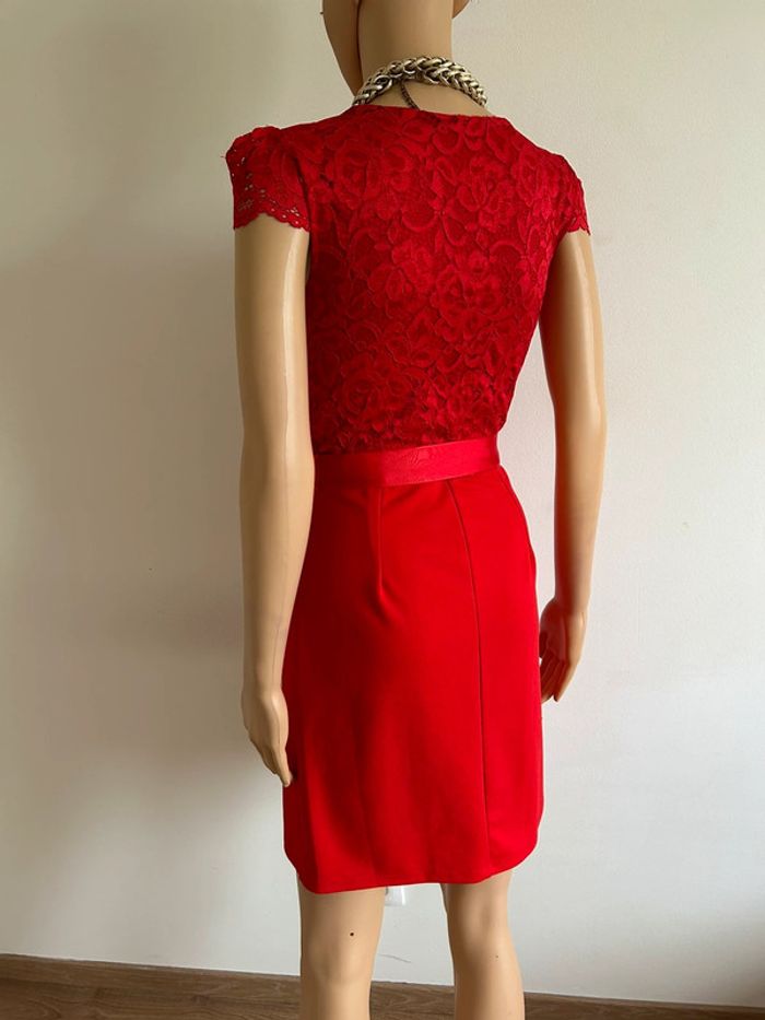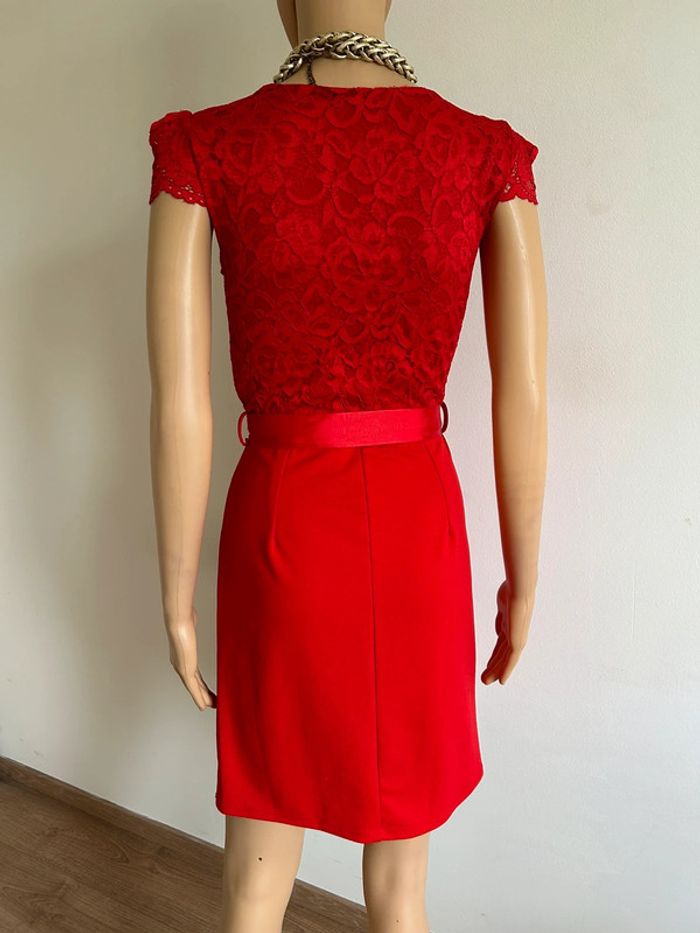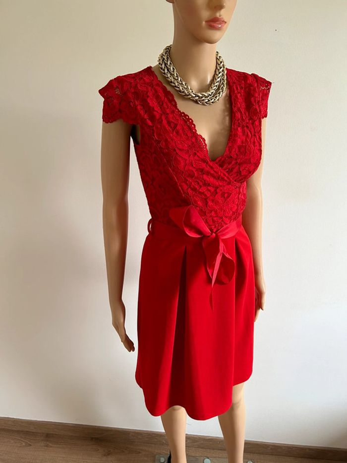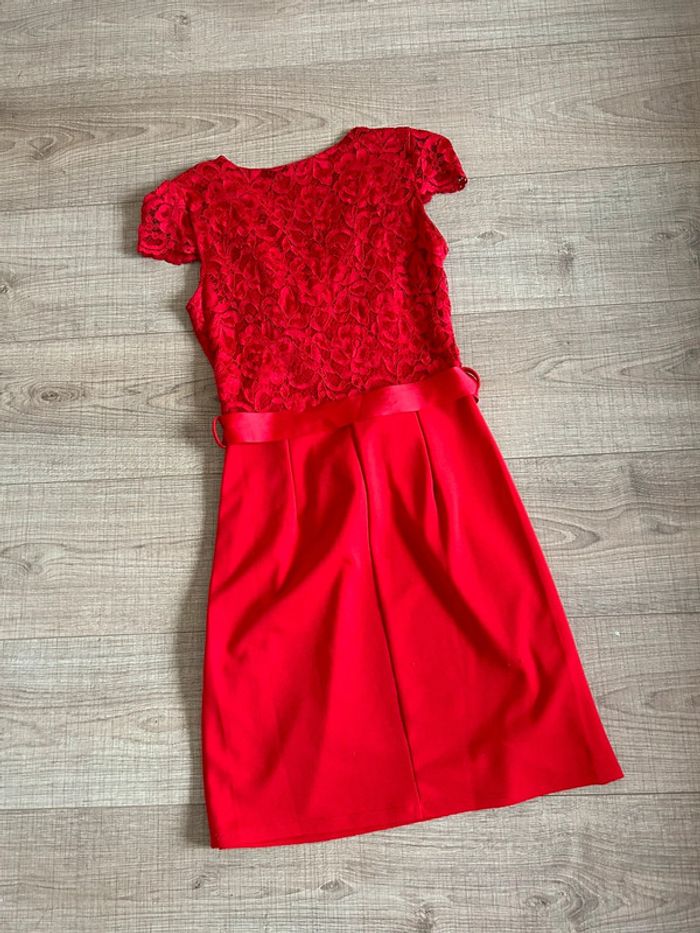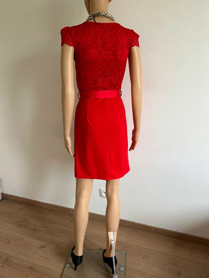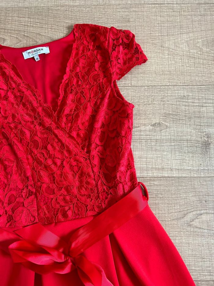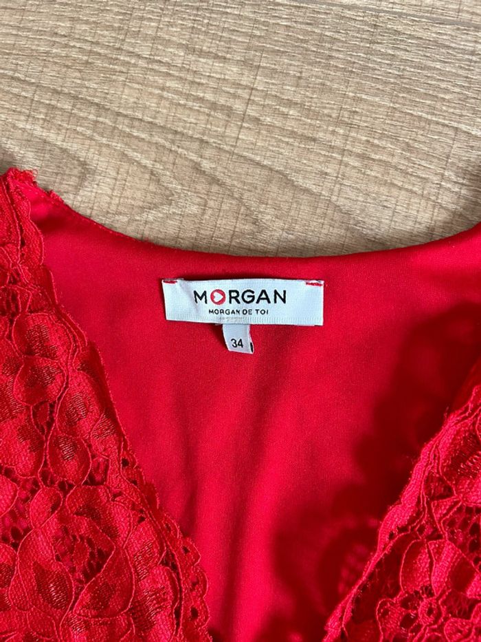 Magnifique robe rouge à manches courtes, avec dentelle, de marque Morgan.