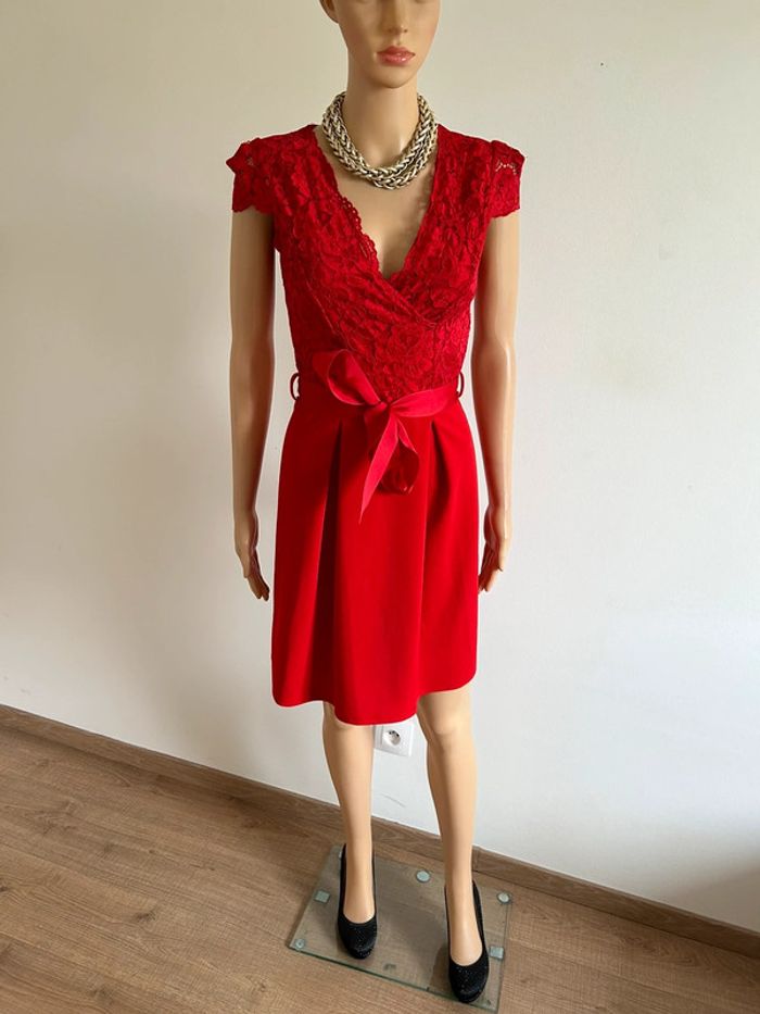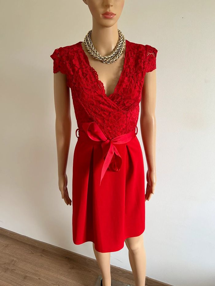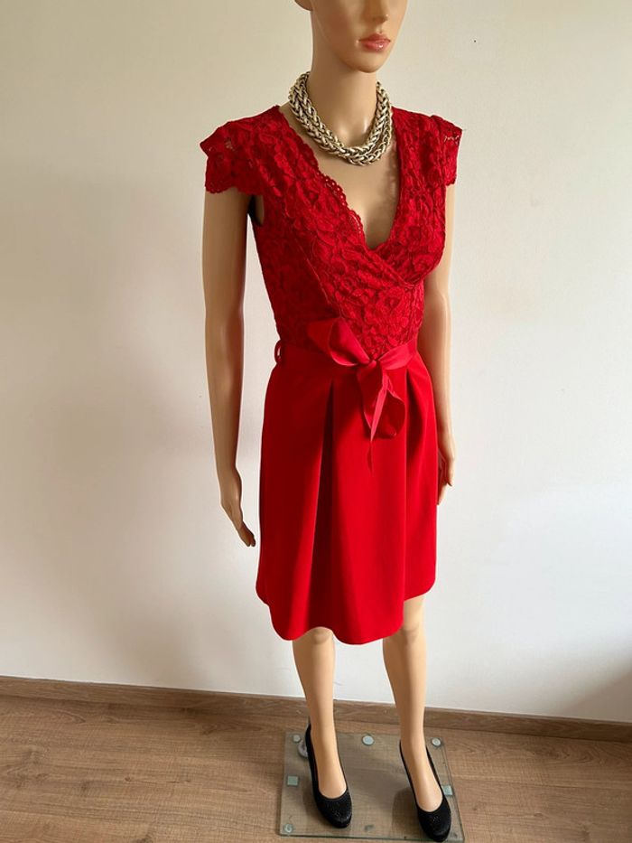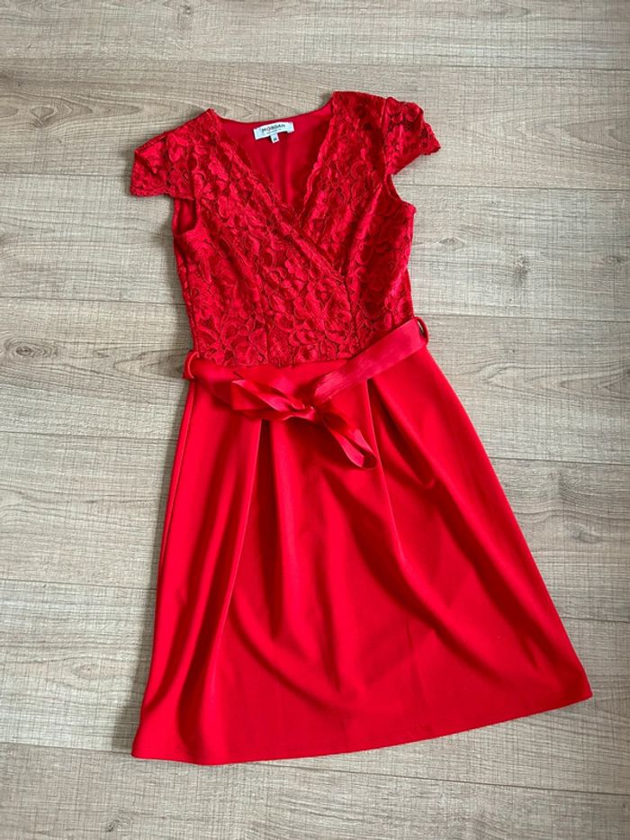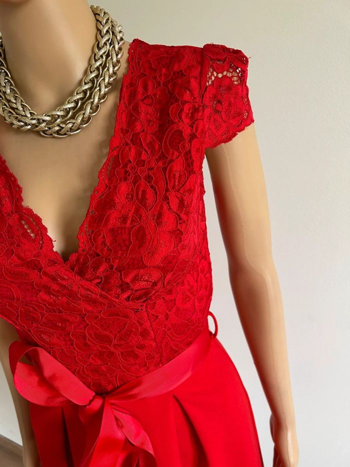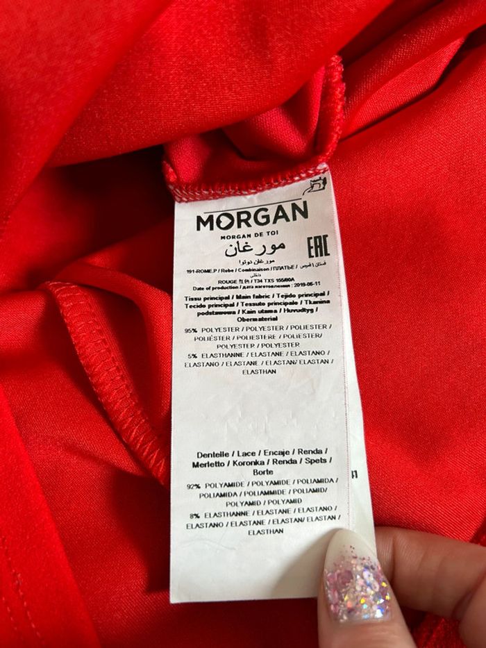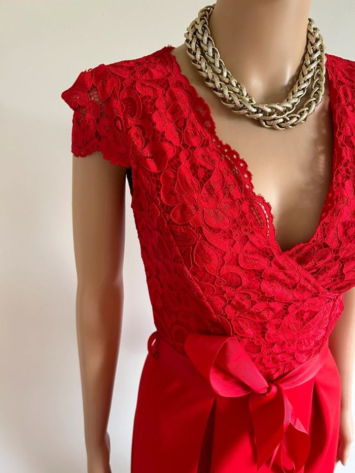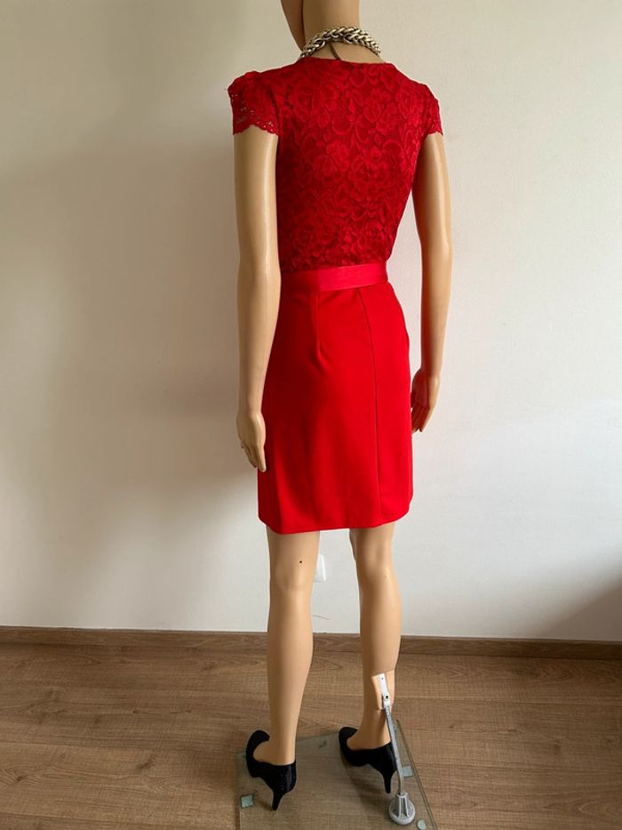 Magnifique robe rouge à manches courtes, avec dentelle, de marque Morgan.