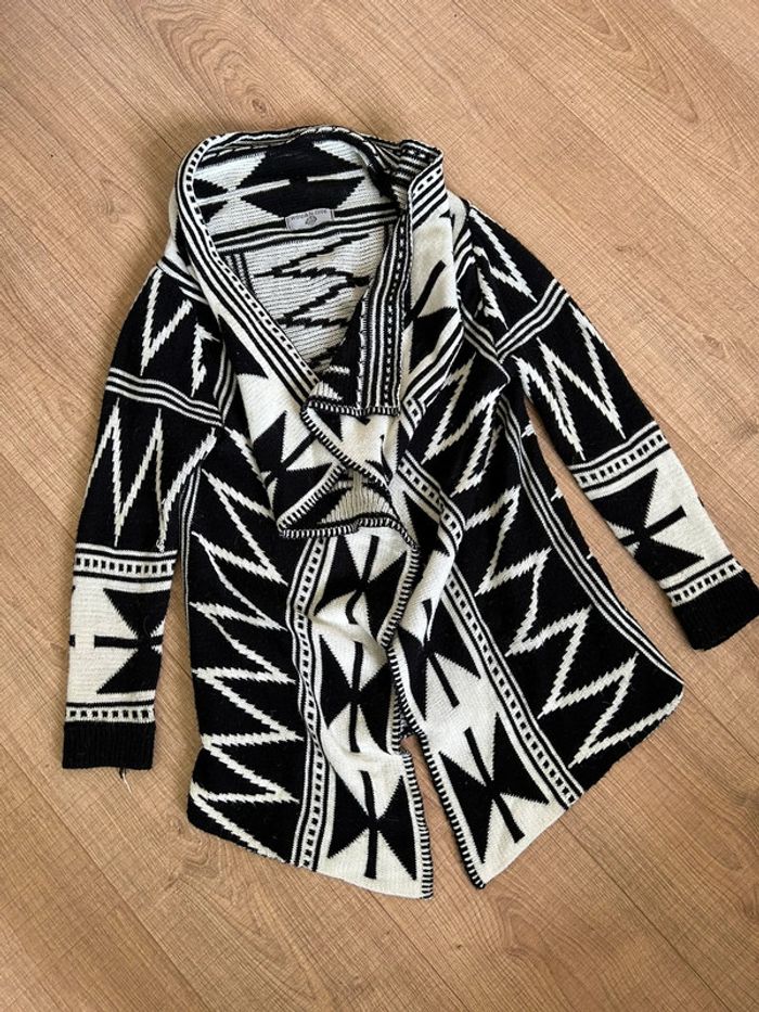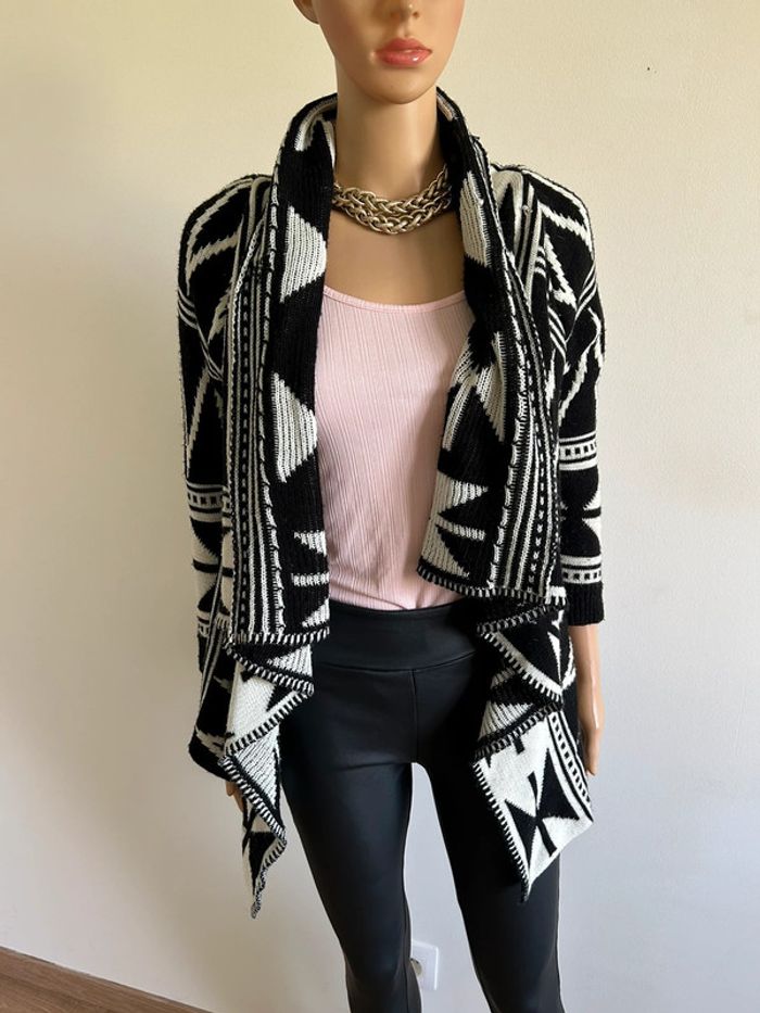 Joli gilet poncho blanc et noir. Taille unique. Porté souvent, état satisfaisant.
