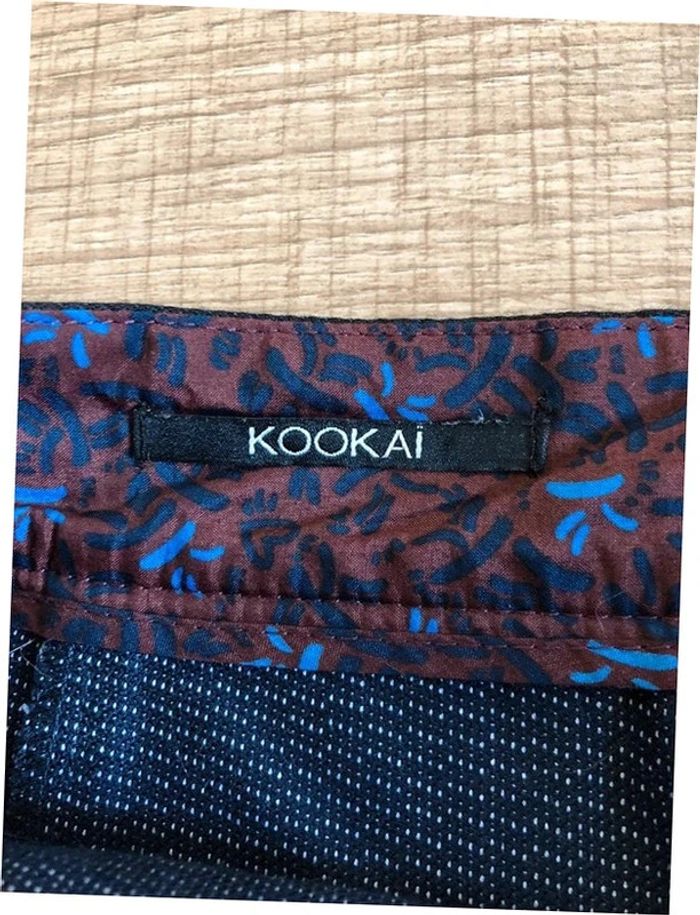 Jolie jupe courte bleue marine et noire, de marque Kookai. Fermeture à l’arrière. Taille 36. Portée quelques fois, en très bon état. taille 35 cms longueur 40 cms 65% polyester, 32% viscose et 3% elasthanne Le prix reste négociable dans la limite du raisonnable. Un petit cadeau dans le colis.