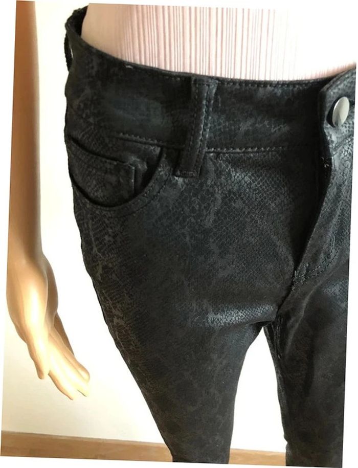 Joli pantalon noir imprimé pour femme, de marque Etam. Taille 38. Peu porté en excellent état. taille 35 cms à 39 cms longueur 99 cms longueur entrejambes 72 cms Le tissu est extensible Étiquette intérieure de composition coupée Le prix reste négociable dans la limite du raisonnable. Un petit cadeau dans le colis.