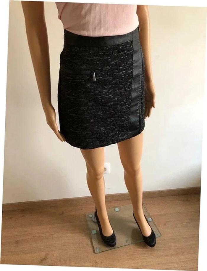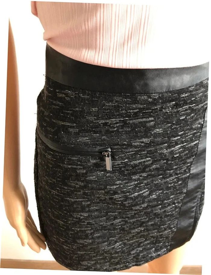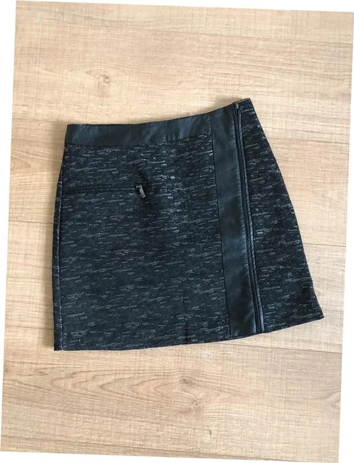 Jupe courte grise et noire avec simili cuir Morgan taille 34 jamais portée - photo numéro 1