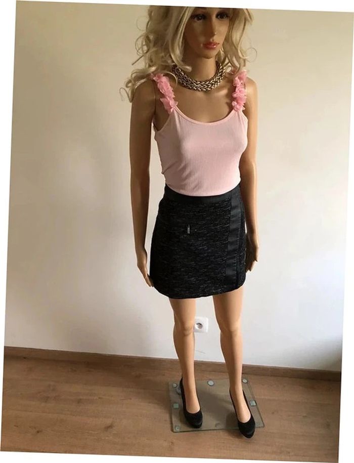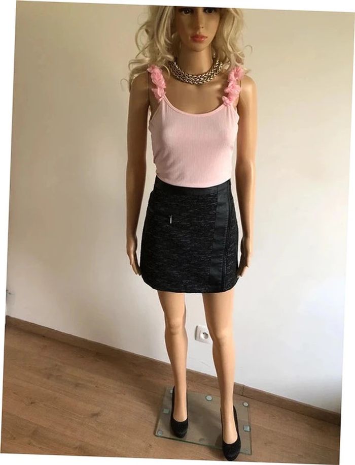 Jupe courte grise et noire avec simili cuir Morgan taille 34 jamais portée - photo numéro 14