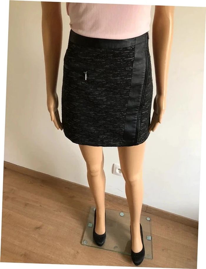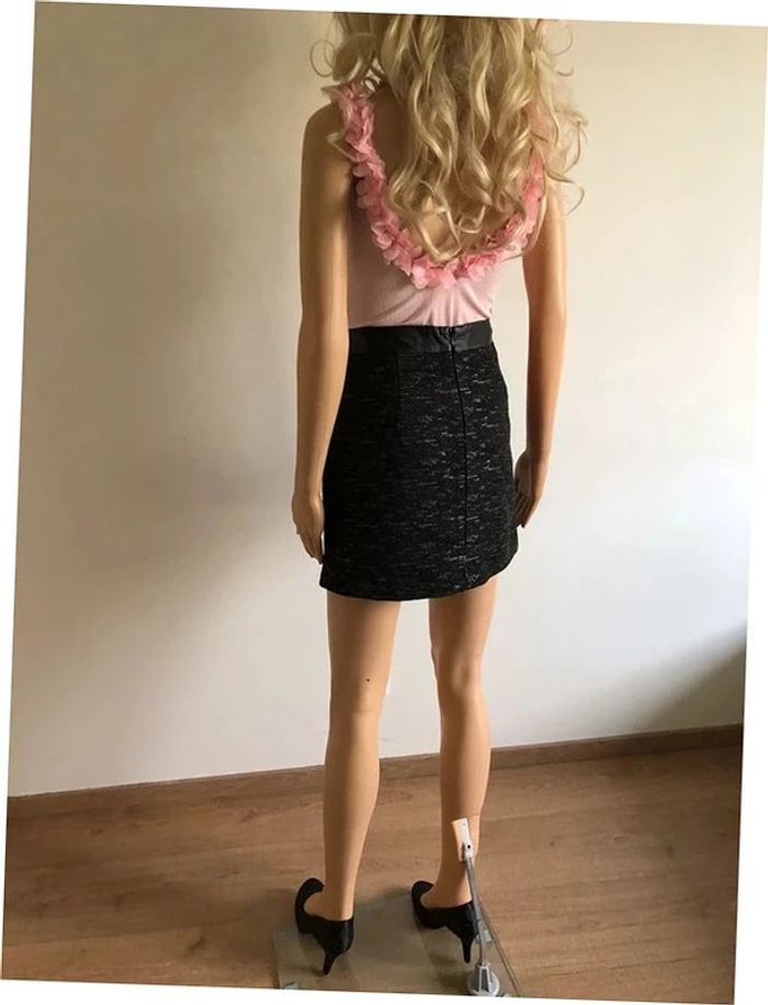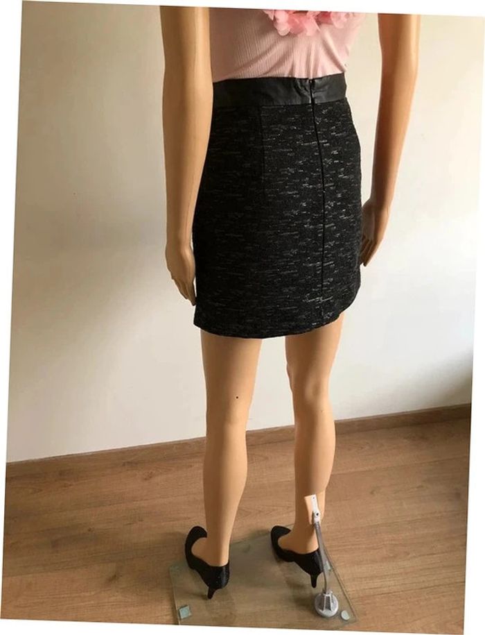 Jupe courte grise et noire avec simili cuir Morgan taille 34 jamais portée - photo numéro 7