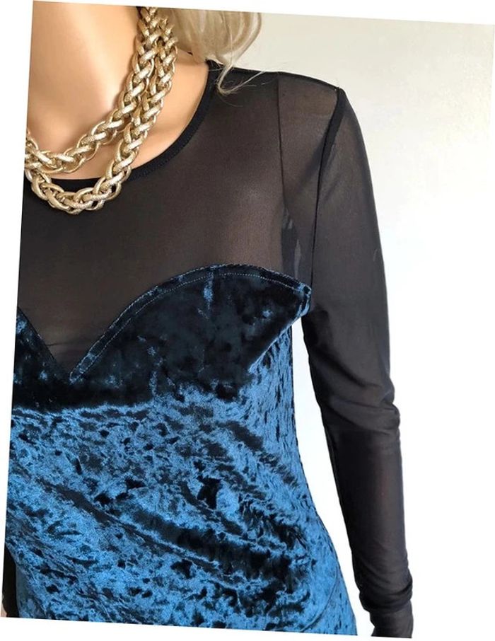 Magnifique haut noir et bleu à manches longues, de marque Morgan. Taille XS. Il est neuf avec étiquette (valeur 35€). aisselle à aisselle 40 cms à 46 cms épaule à épaule 34 cms à 40 cms longueur manches 60 cms taille 36 cms longueur depuis épaule 59 cms Le tissu est extensible 95% polyester et 5% elasthanne Le prix reste négociable dans la limite du raisonnable. Un petit cadeau dans le colis.