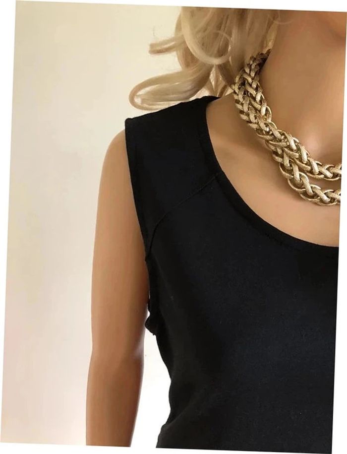 Petite robe noire sans manches, de marque In Extenso. Taille 46 qui taille petit et correspond plutôt à du 42/44. Fermeture sur le côté. Portée quelques fois en très bon état. aisselle à aisselle 48 cms taille 48 cms longueur depuis épaule 93 cms Étiquette intérieure de composition coupée Le prix reste négociable dans la limite du raisonnable.