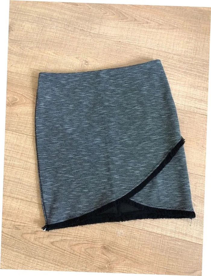 Jolie jupe grise et noire croisée sur le devant, de marque Mosquitos. Fermeture a l’arrière. Taille 40. Portée une fois, en très bon état. taille 40 cms longueur 49 cms Le tissu est extensible Étiquette intérieure de composition coupée Le prix reste négociable dans la limite du raisonnable.. Un petit cadeau dans le colis.