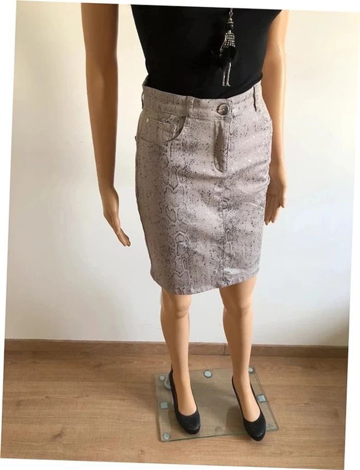 Magnifique jupe imprimée grise et beige, brillante par endroit, de marque Breal. Taille 38. Elle est neuve avec étiquette (valeur 50€). taille 37 cms longueur 52 cms Le tissu est extensible 68% coton, 32% polyester et 3% elasthanne Le prix reste négociable dans la limite du raisonnable. Un petit cadeau dans le colis.