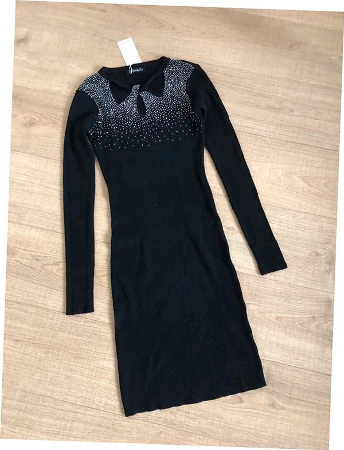 Robe pull noire neuve avec strass argentés Jolio & Co taille unique - photo numéro 2
