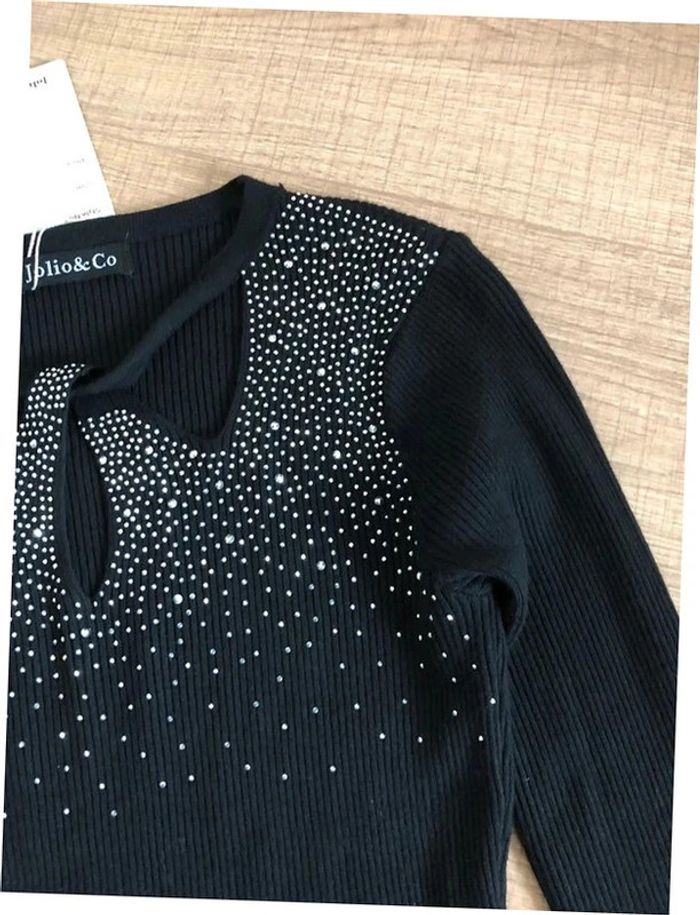 Robe pull noire neuve avec strass argentés Jolio & Co taille unique - photo numéro 15
