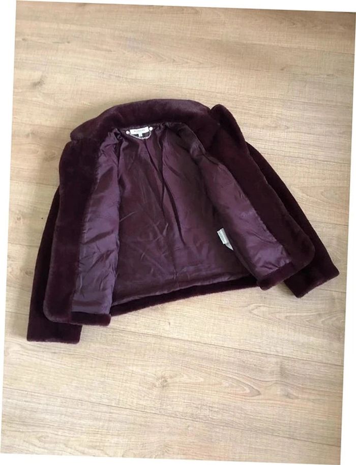 Manteau court bordeaux en fausse fourrure Morgan taille 34 jamais porté - photo numéro 3