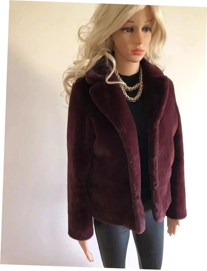 Manteau court bordeaux en fausse fourrure Morgan taille 34 jamais porté - photo numéro 1