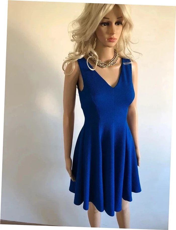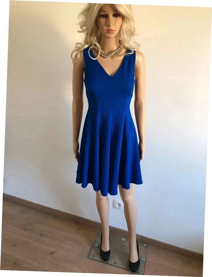 Magnifique robe bleue sans manches, de marque à Halle. Taille 36. Jamais portée, état neuf. aisselle à aisselle 36 cms a 44 cms taille 31 cms à 39 cms longueur depuis épaule 86 cms Le tissu est extensible 96% polyester et 4% elasthanne Le prix reste négociable dans la limite du raisonnable. Un petit cadeau dans le colis 🌸