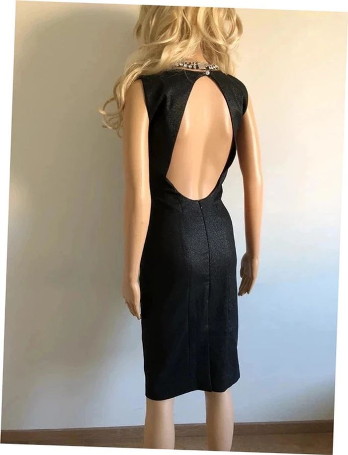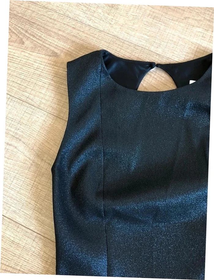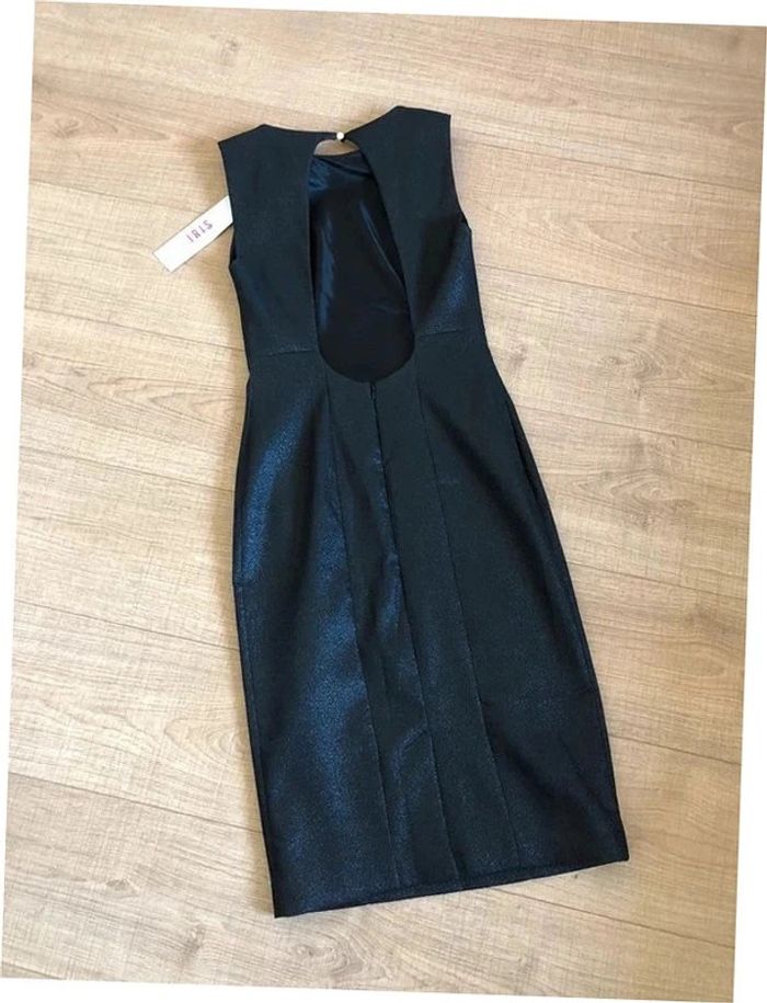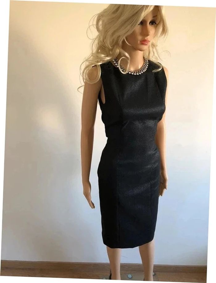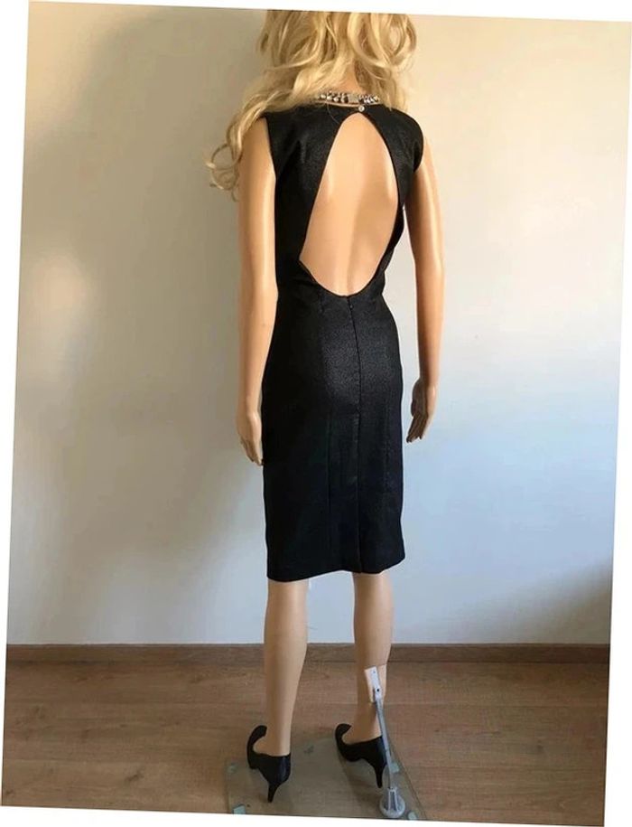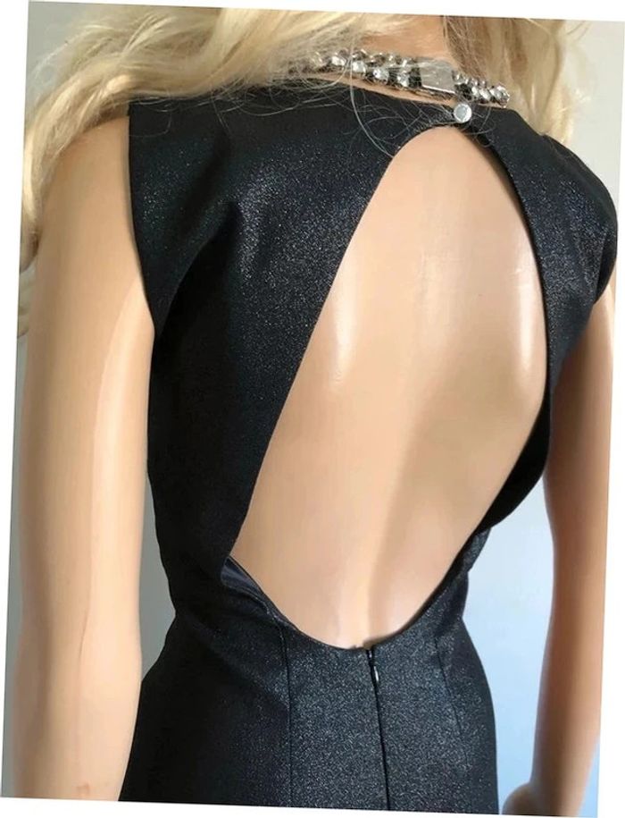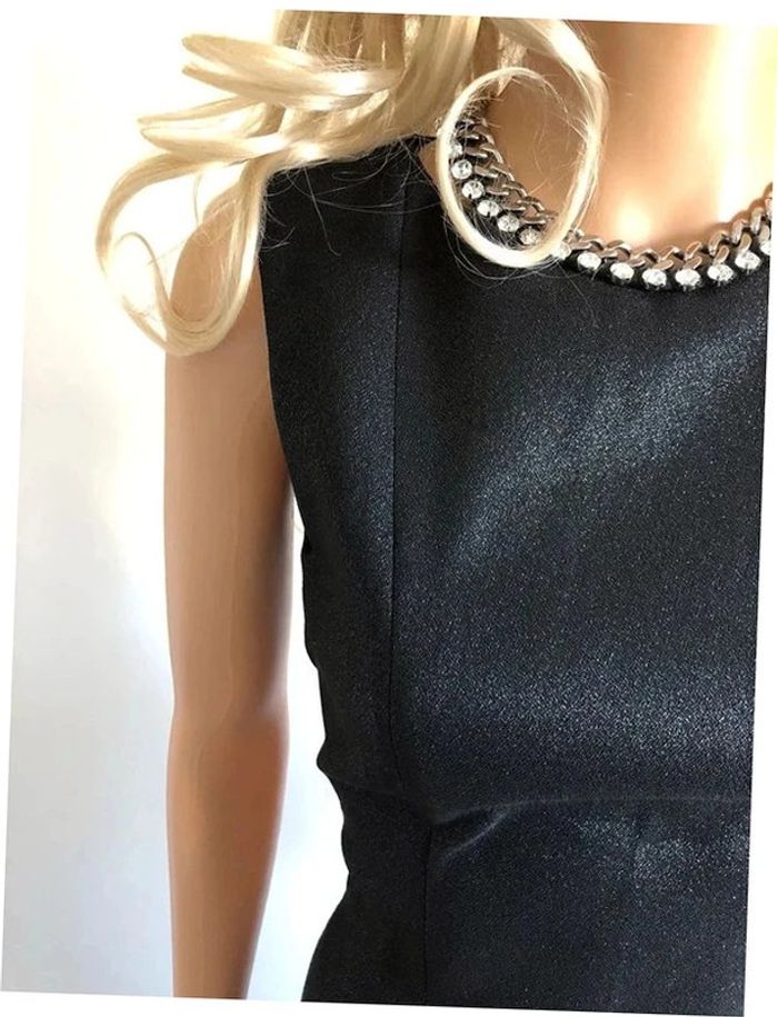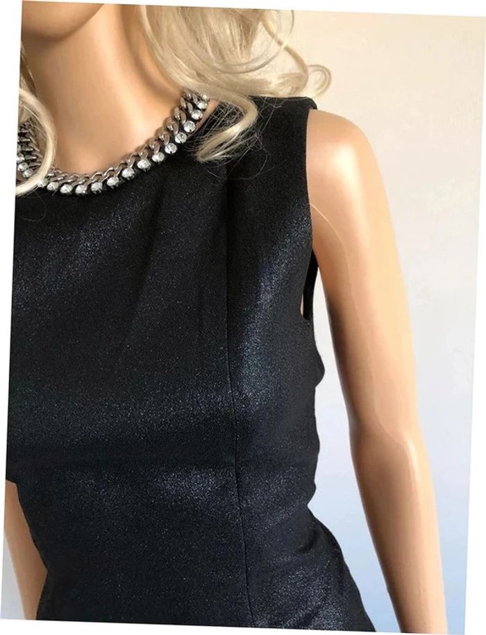 Magnifique robe noire brillante sans manches, de marque Morgan (collection Iris Mittenaere).