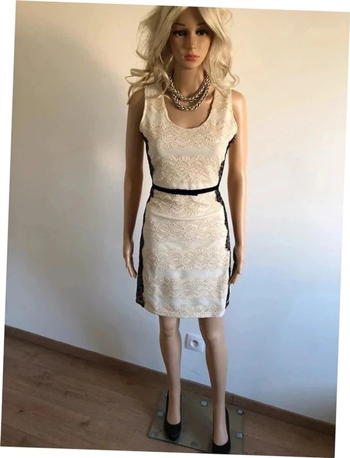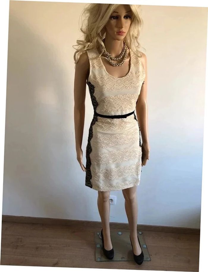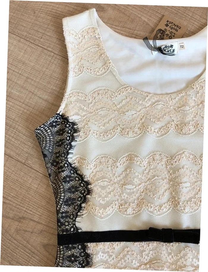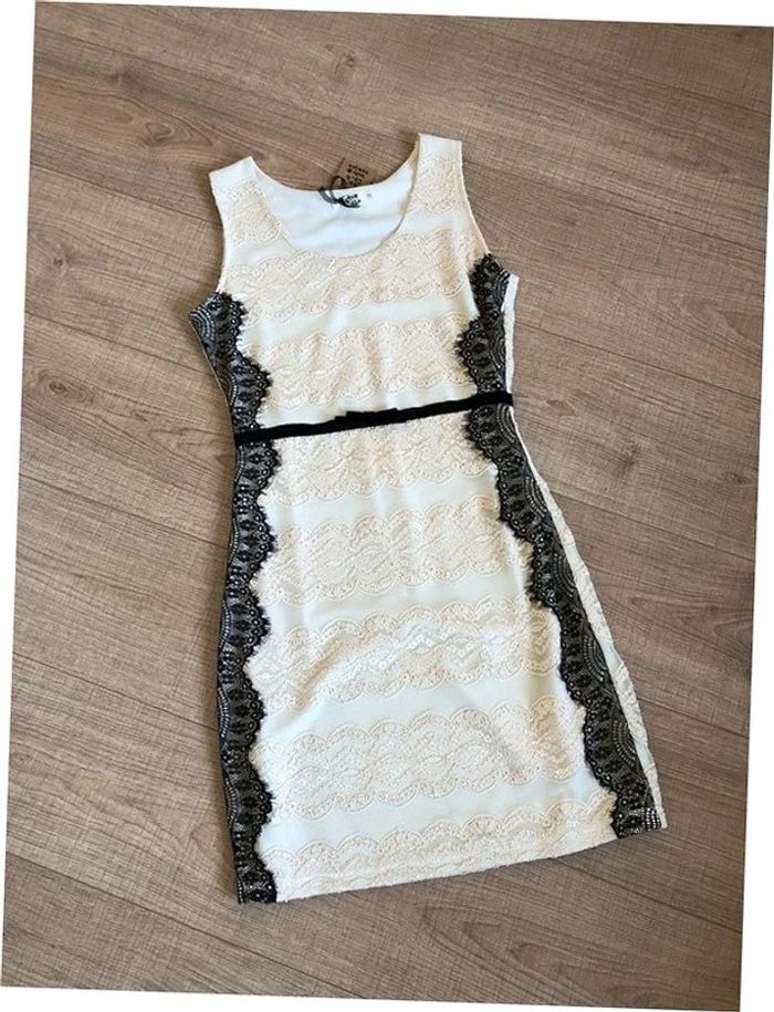 Robe beige dorée et noire neuve en dentelle sans manches Molly Bracken taille 2 (valeur 49€) - photo numéro 1