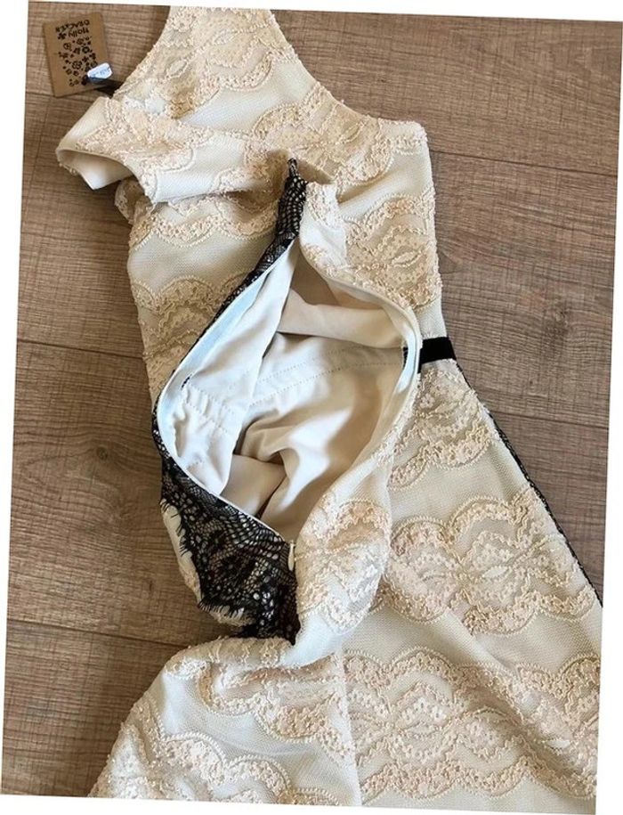 Robe beige dorée et noire neuve en dentelle sans manches Molly Bracken taille 2 (valeur 49€) - photo numéro 15