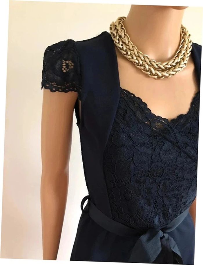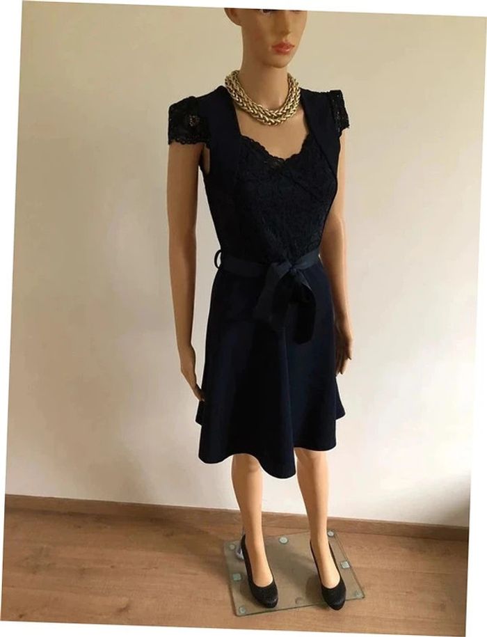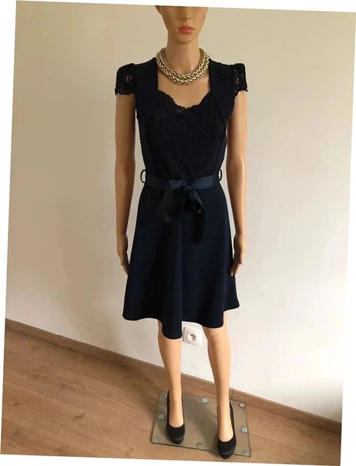 Magnifique robe bleue marine avec dentelle, a manches courtes, de marque Morgan. Ruban a nouer à la taille. Taille 34. Elle est neuve avec étiquette (valeur 55€). aisselle à aisselle 38 cms à 48 cms épaule à épaule 38 cms à 44 cms taille 33 cms à 37 cms longueur depuis épaule 93 cms Le tissu est extensible 95% polyester et 5% elasthanne Le prix reste négociable dans la limite du raisonnable. Un petit cadeau dans le colis 🌸