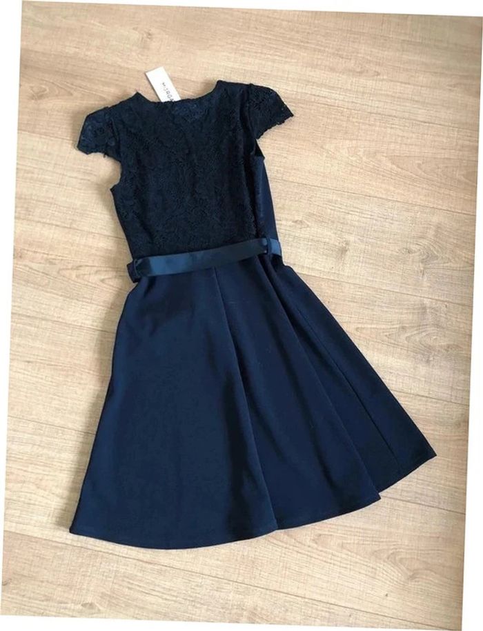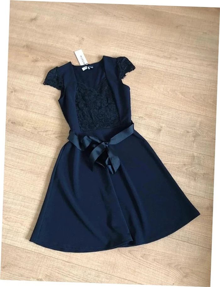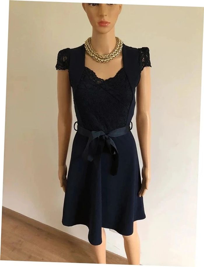 Robe bleue marine neuve à manches courtes avec dentelle Morgan taille 34 (valeur 55€) - photo numéro 1