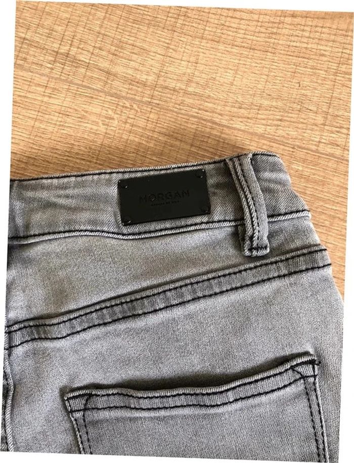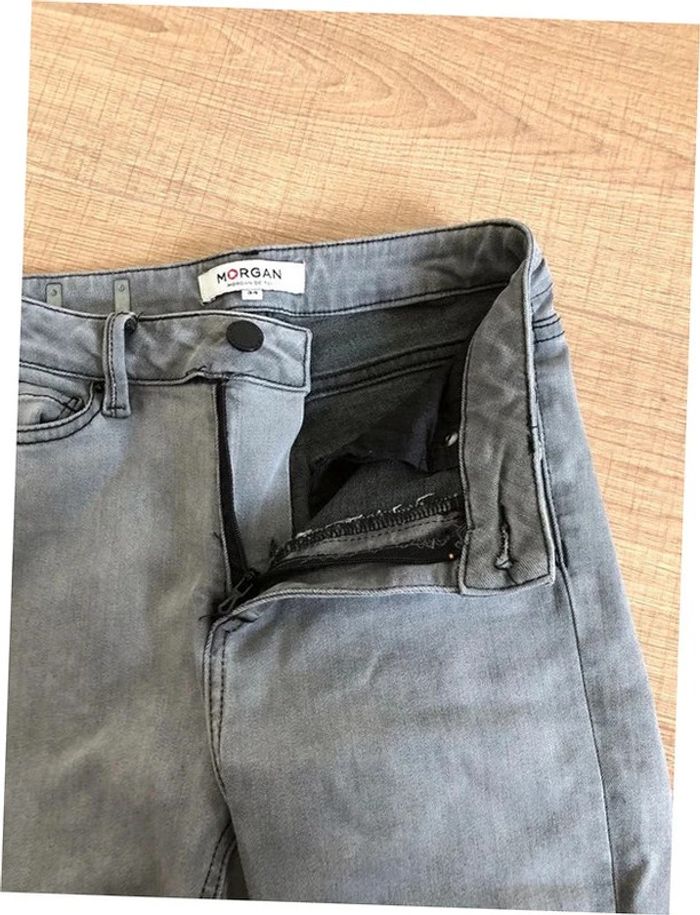 Très beau jean gris de marque Morgan. Taille 34. Porté quelques fois mais encore en très bon état. taille 31 cms a 34 cms longueur 90 cms longueur entrejambes 64 cms Le tissu est extensible Étiquette intérieure de composition coupée Le prix reste négociable dans la limite du raisonnable. Un petit cadeau dans le colis.