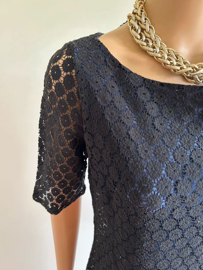 Robe noire et bleue en dentelle à manches courtes Naf Naf taille 36 TBE - photo numéro 11
