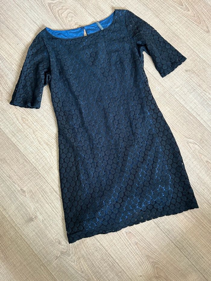 Robe noire et bleue en dentelle à manches courtes Naf Naf taille 36 TBE - photo numéro 9