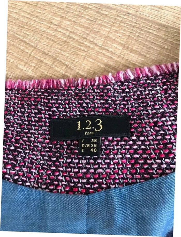 Jolie veste courte rose chamarrée, de marque 123. Taille 38. Peut se porter ouverte ou fermée avec un crochet. Jamais portée car pas mon style aisselle à aisselle 48 cms épaule à épaule 39 cms longueur manches 54 cms taille 42 cms longueur depuis épaule 56 cms 57% acrylique, 31% polyester et 12% viscose Le prix reste négociable dans la limite du raisonnable. Un petit cadeau dans le colis 🌸